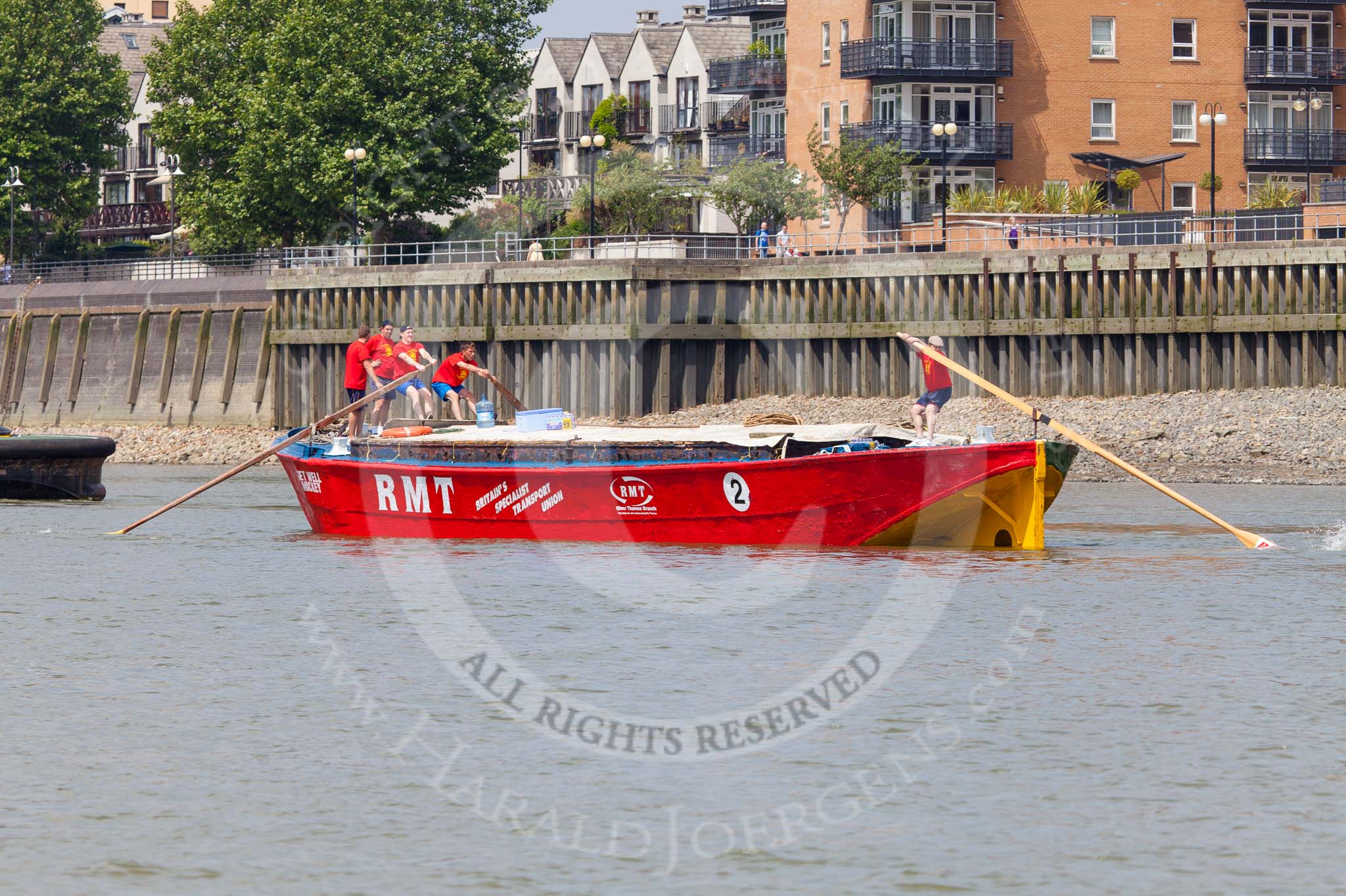 Photo 1307131241055D23775HaraldJoergens TOW River Thames Barge Driving Race 2013: Barge "Jane", by the RMT Union, during the race.. River Thames between Greenwich and Westminster, London, United Kingdom, on 13 July 2013 at 12:41, image #165