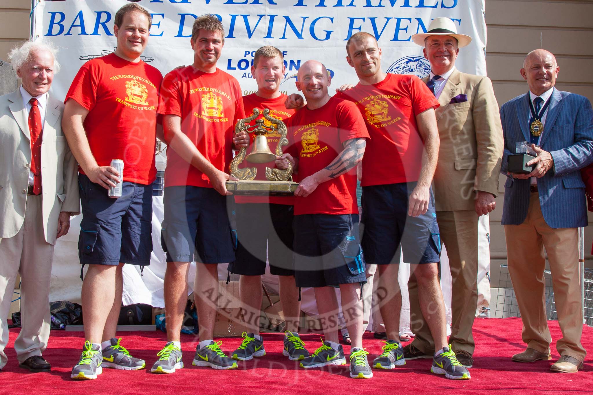 TOW River Thames Barge Driving Race 2013: The "Transport on Water Challenge Trophy", for the first overall winner, goes to the crew of barge "Blackwall", by the Port of London Authority..