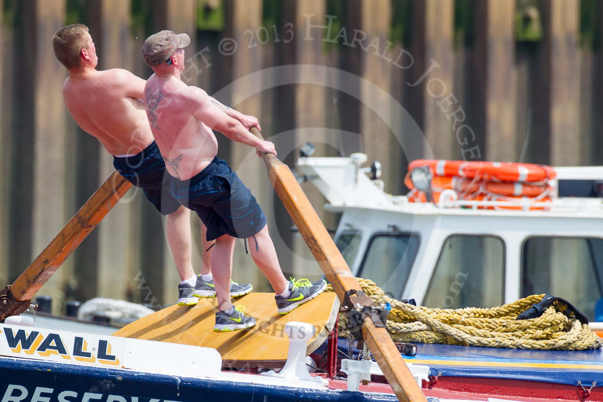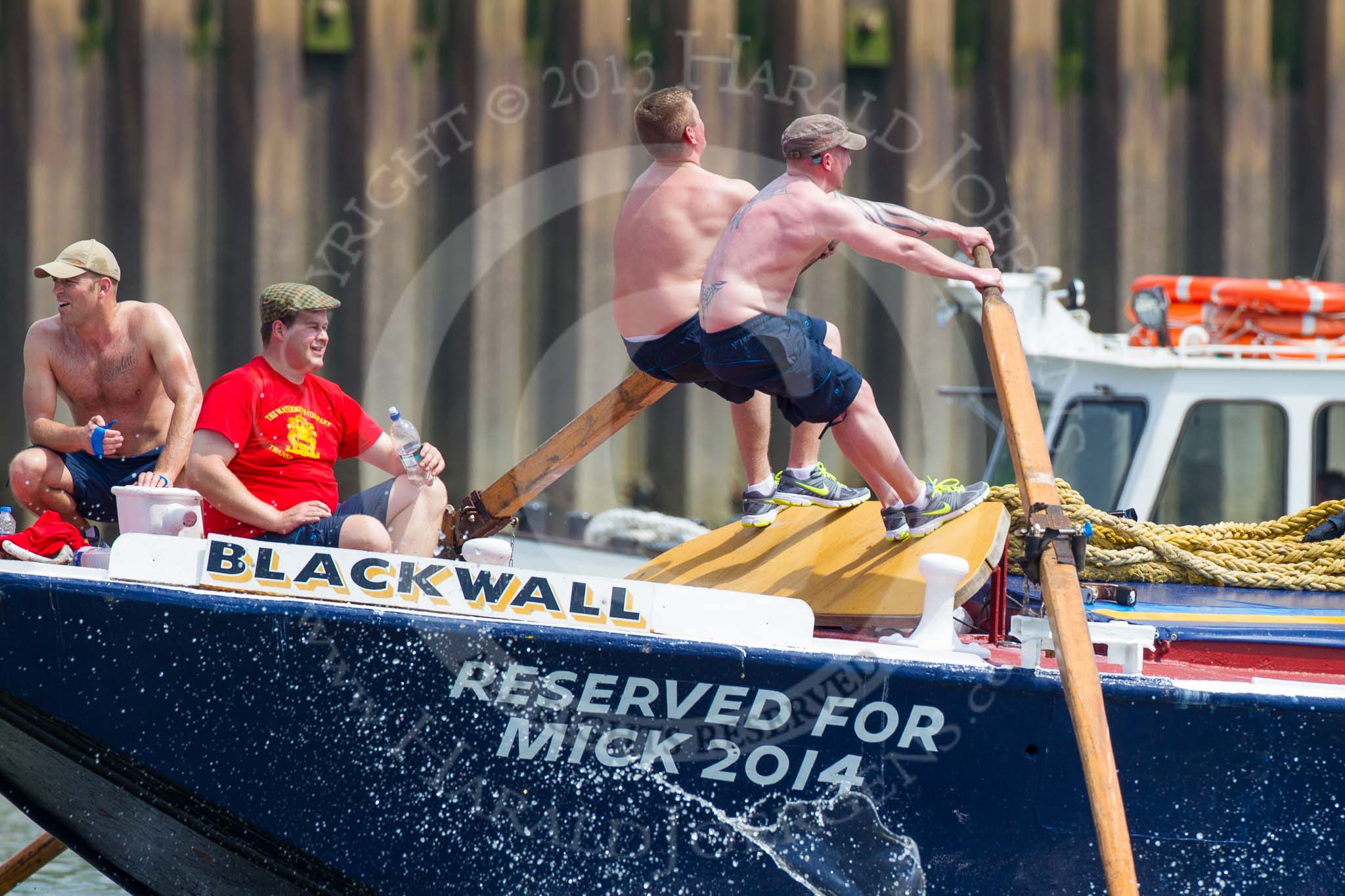 TOW River Thames Barge Driving Race 2013: Rowers on barge "Blackwall", by the Port of London Authority. River Thames between Greenwich and Westminster, London, United Kingdom, on 13 July 2013 at 12:48, image #221