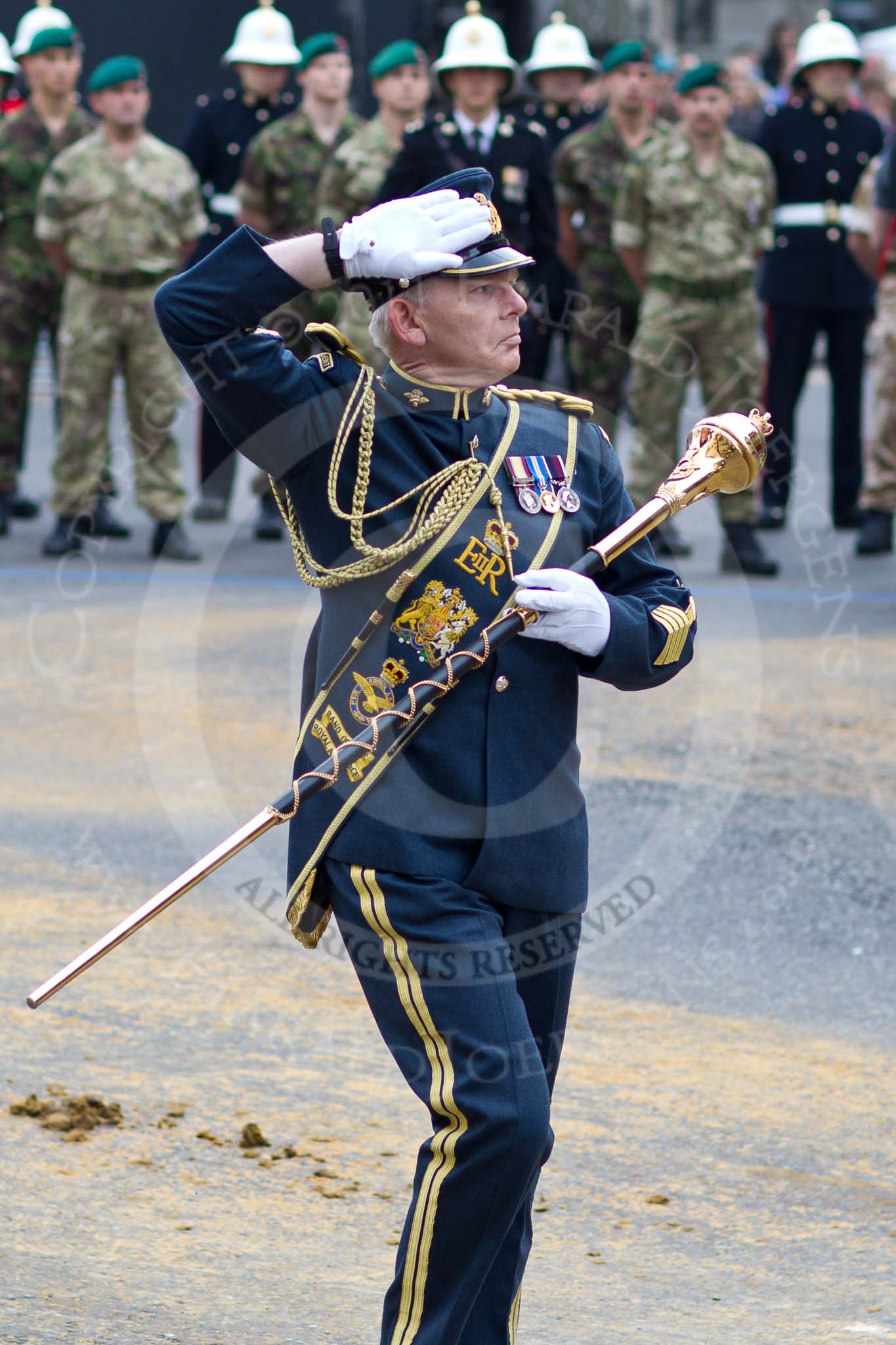 The Lord Mayor's Show 2011: The Central Band of the Royal Air Force, led by the Drum Major.. Opposite Mansion House, City of London, London, -, United Kingdom, on 12 November 2011 at 11:12, image #163