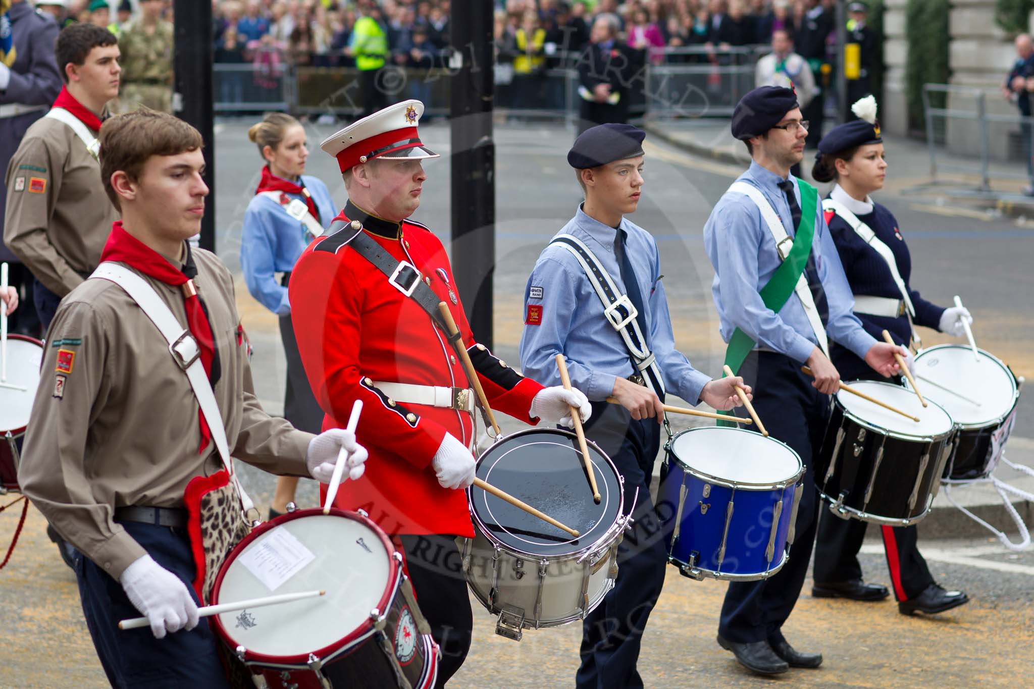 The Lord Mayor's Show 2011: National Youth Marching Band - here 2nd Lieutenant Dean Ongley of the Redhill Corps of Drums, Senior Drum Major of the National Youth Marching Band..