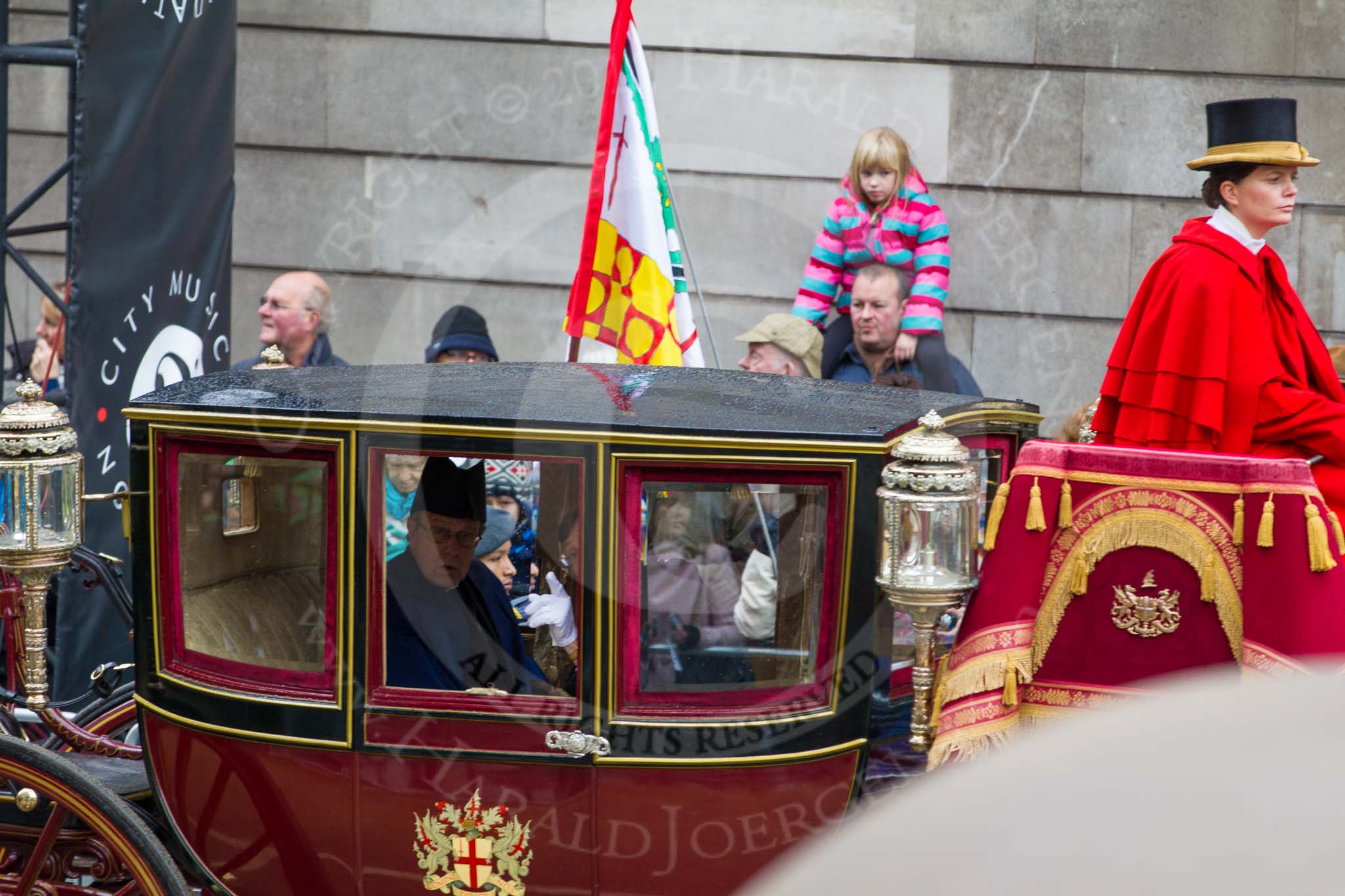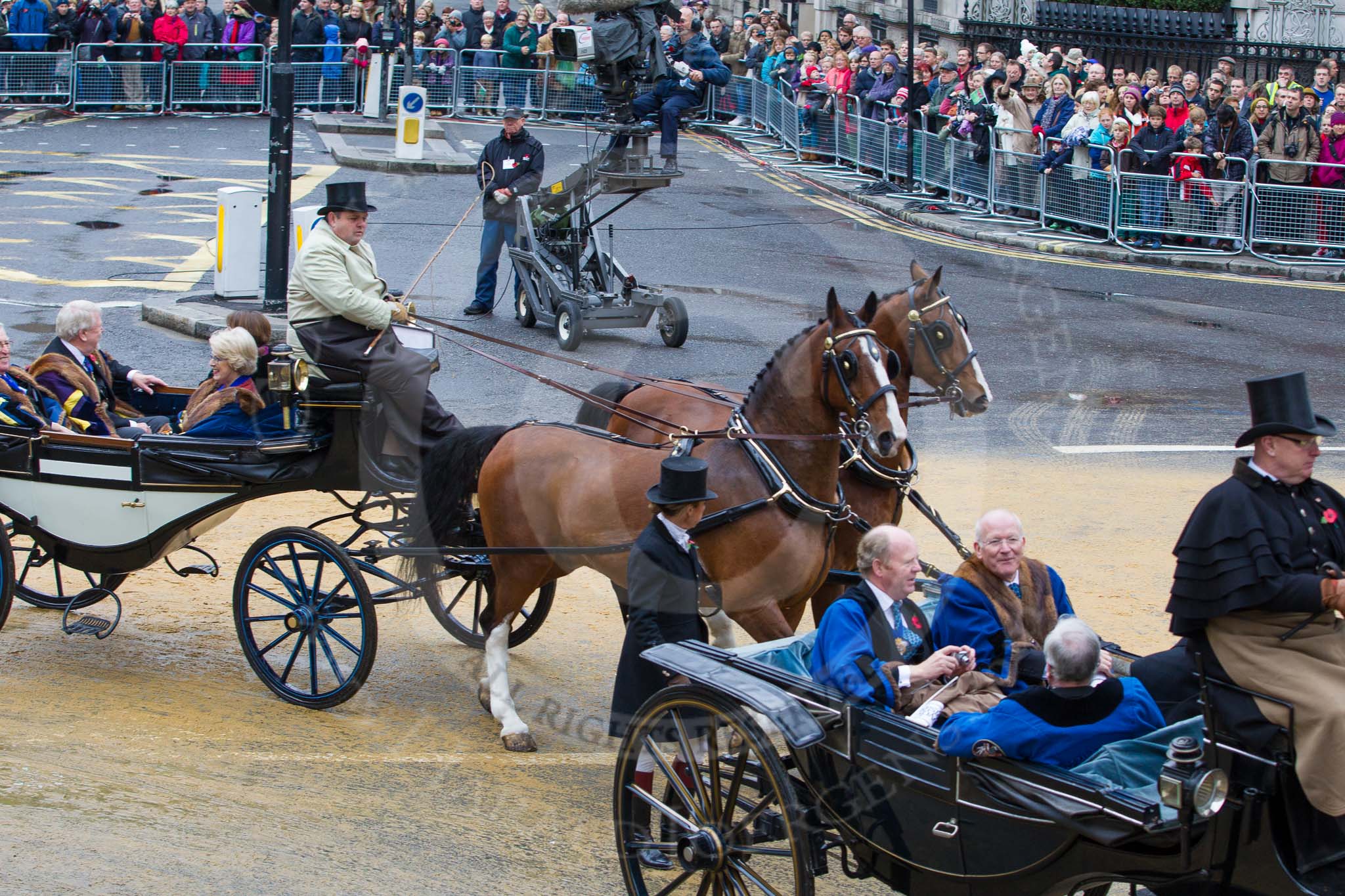 Lord Mayor's Show 2012: Entry 131- Chief Commoner and Secondary, with the Royal Mews's Lady Coachman Phillipa Jackson.. Press stand opposite Mansion House, City of London, London, Greater London, United Kingdom, on 10 November 2012 at 12:04, image #1841