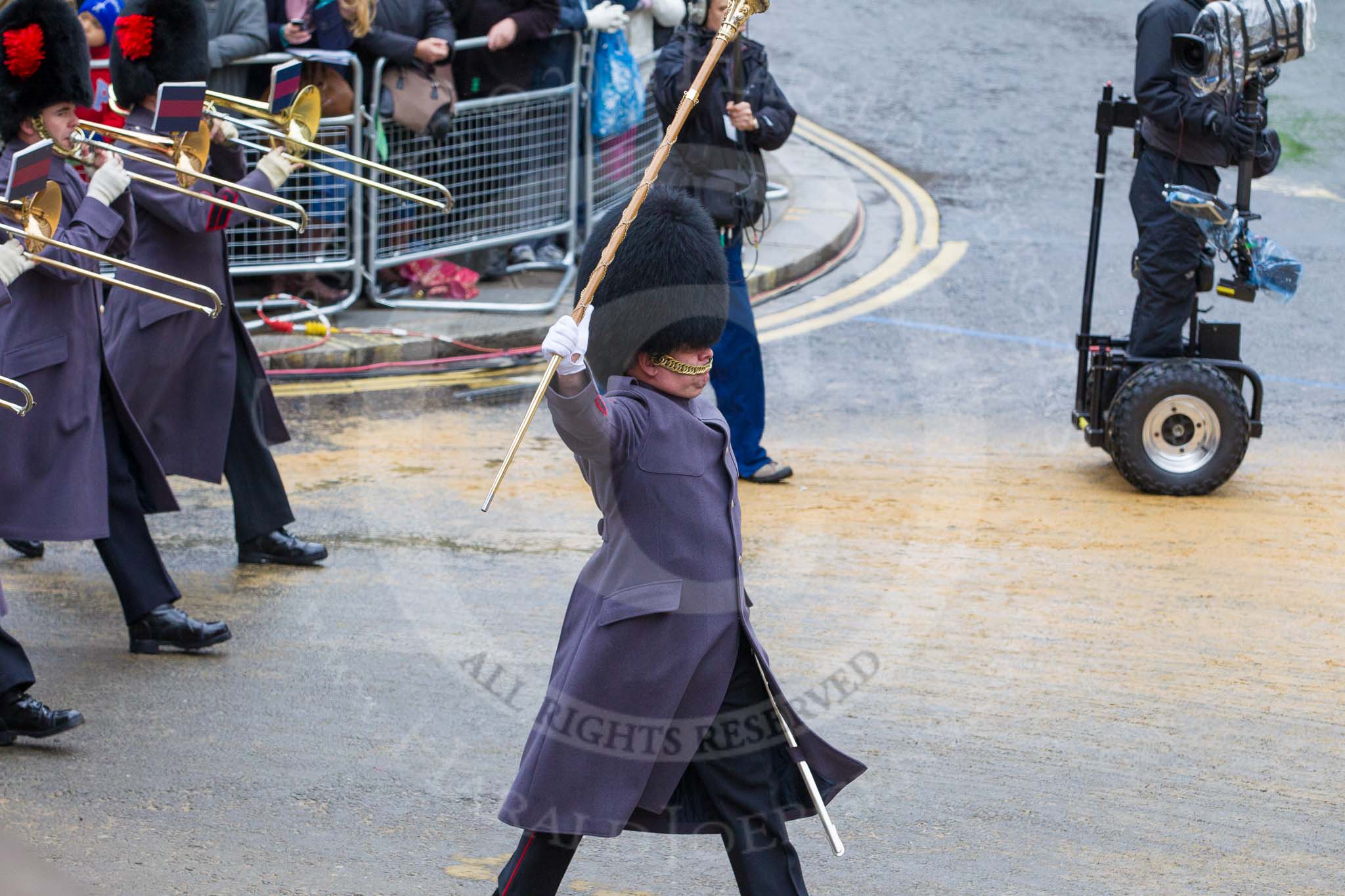 Lord Mayor's Show 2012: Entry 139 - The Band of the Coldstream Guards, lead by Senior Drum Major Ben Roberts, Coldstream Guards.. Press stand opposite Mansion House, City of London, London, Greater London, United Kingdom, on 10 November 2012 at 12:06, image #1881