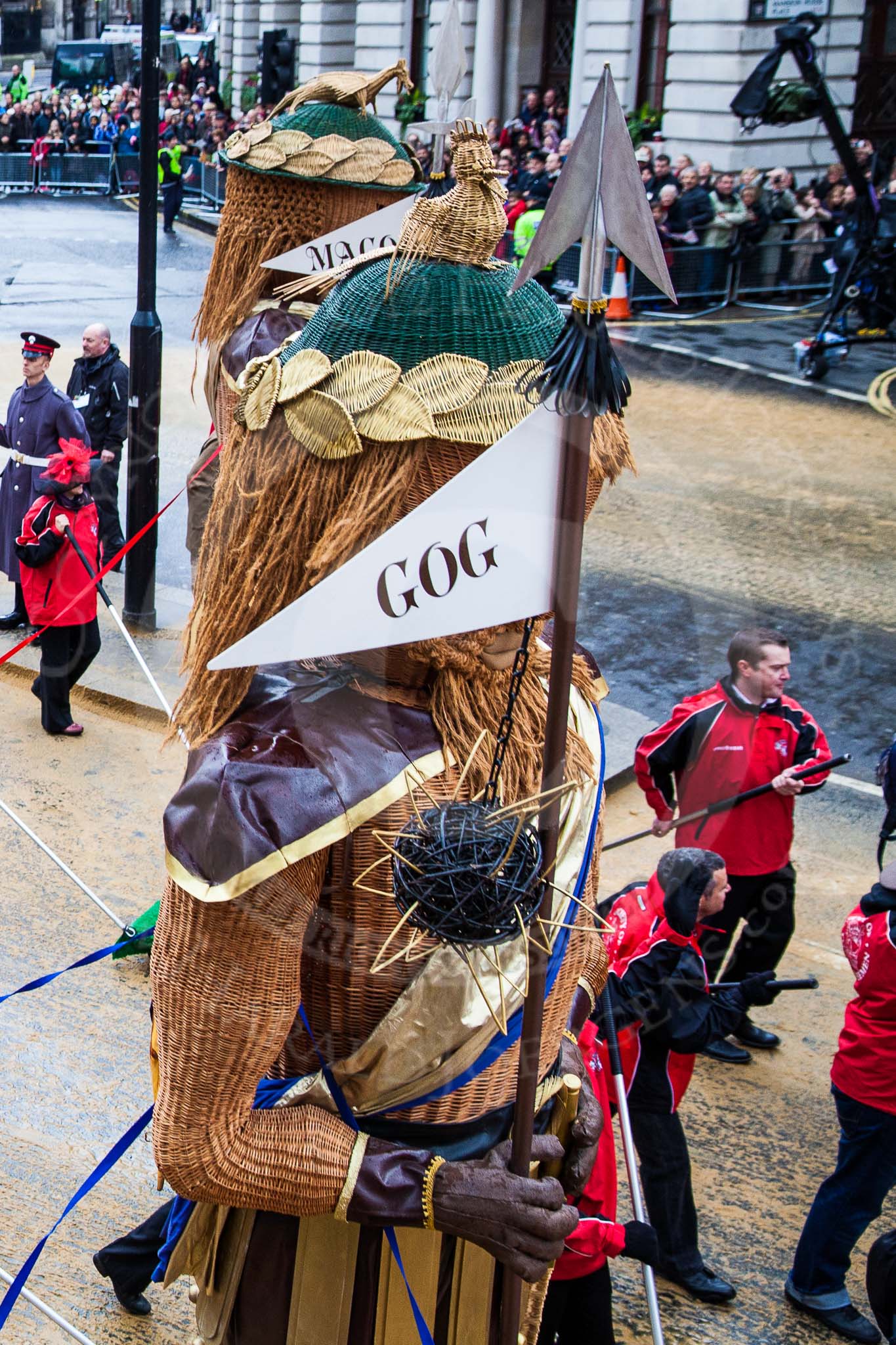 Lord Mayor's Show 2012: Society of Young Freemen / Gog&Magog / 100 Reg't RA(V) (100 Regiment Royal Artillery Volunteers).. Press stand opposite Mansion House, City of London, London, Greater London, United Kingdom, on 10 November 2012 at 11:02, image #216