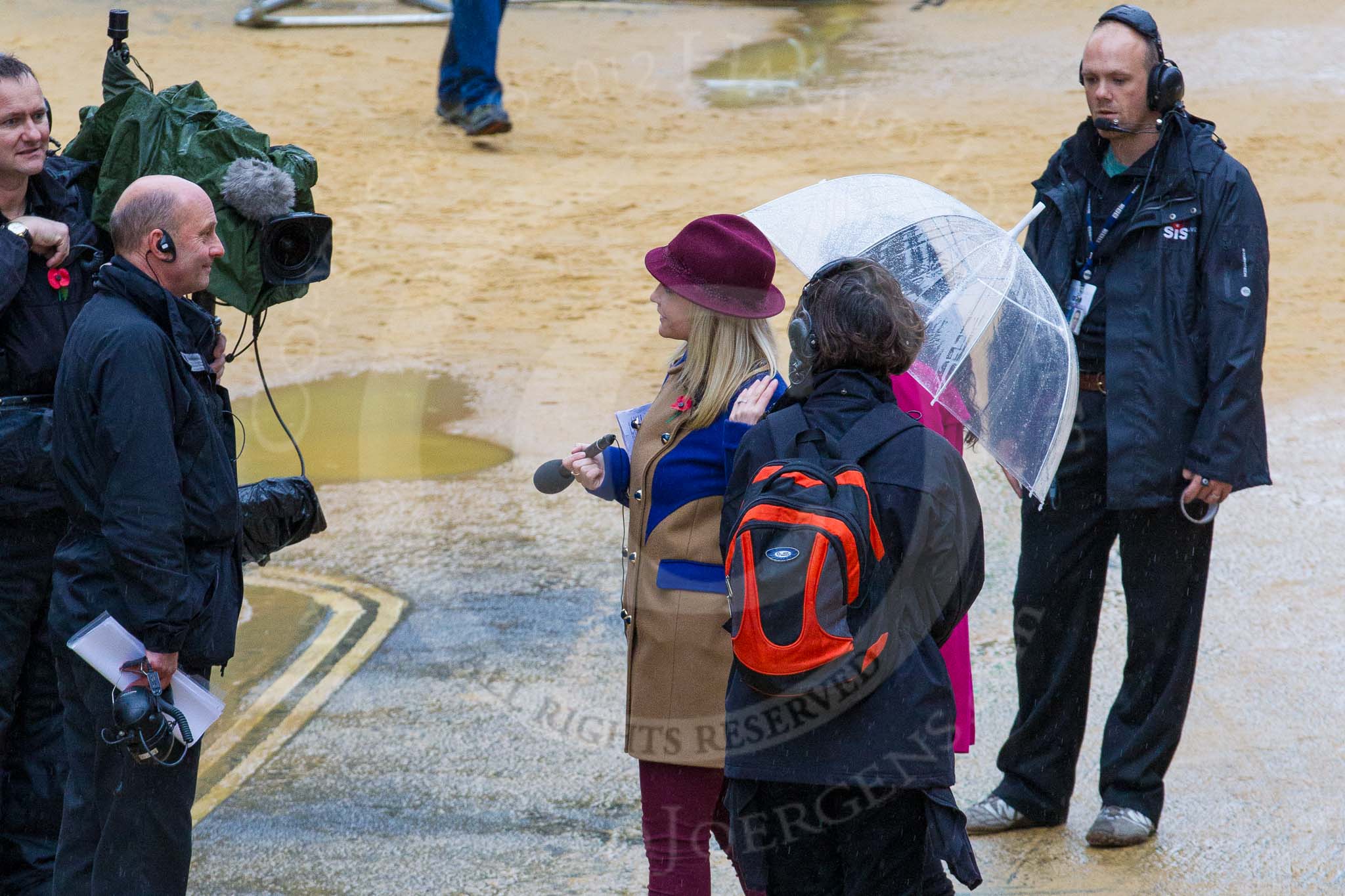 Lord Mayor's Show 2012: The BBC's Helen Skelton with other members of the BBc crew.. Press stand opposite Mansion House, City of London, London, Greater London, United Kingdom, on 10 November 2012 at 09:48, image #17