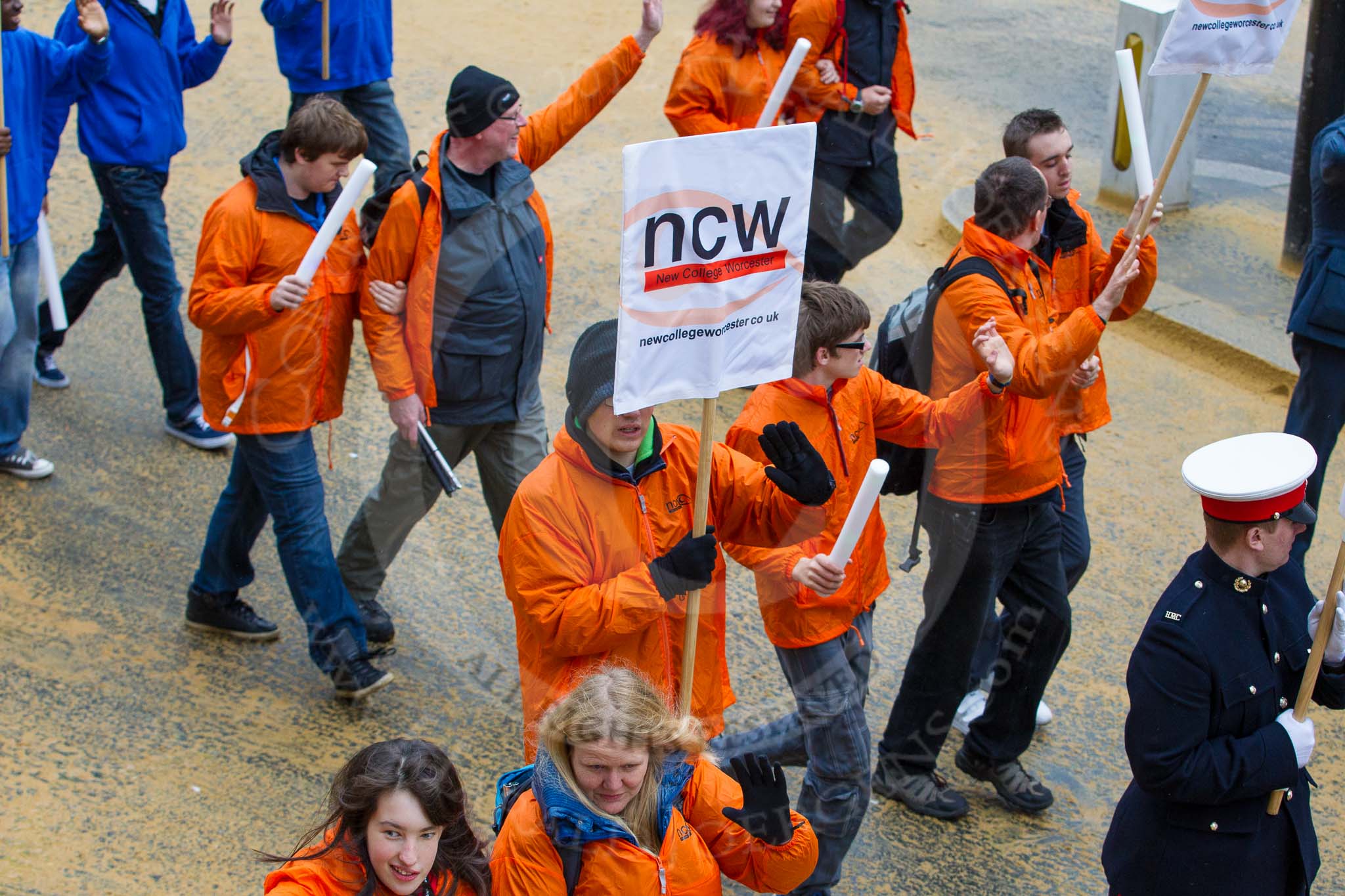 Lord Mayor's Show 2012: Entry 13 - Worshipful Company of Lightmongers, with New College Worcester for the blind and partially sighted, and Mary Hare School for deaf children.. Press stand opposite Mansion House, City of London, London, Greater London, United Kingdom, on 10 November 2012 at 11:05, image #287
