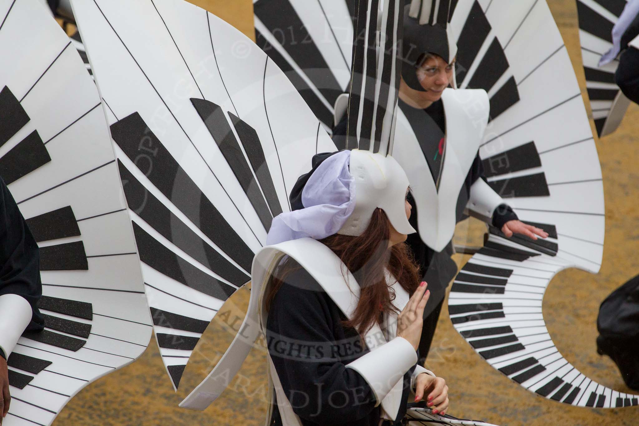 Lord Mayor's Show 2012: Entry 30 - City of London Solicitors' Company with giant musical notes and intruments.. Press stand opposite Mansion House, City of London, London, Greater London, United Kingdom, on 10 November 2012 at 11:13, image #489