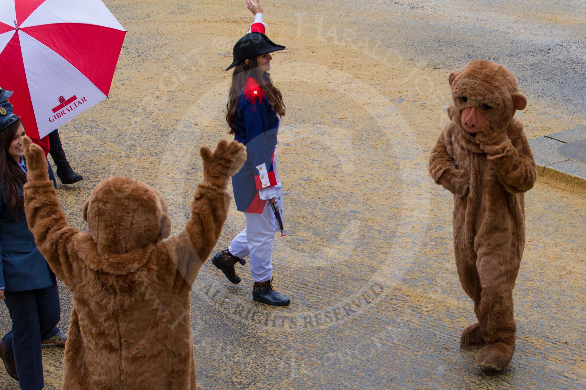 Lord Mayor's Show 2012: Entry 41 - Gibraltar, Gibraltarian students depicting the three main pillars of Gibraltar's economy: tourism, port activities, and finance.. Press stand opposite Mansion House, City of London, London, Greater London, United Kingdom, on 10 November 2012 at 11:17, image #584