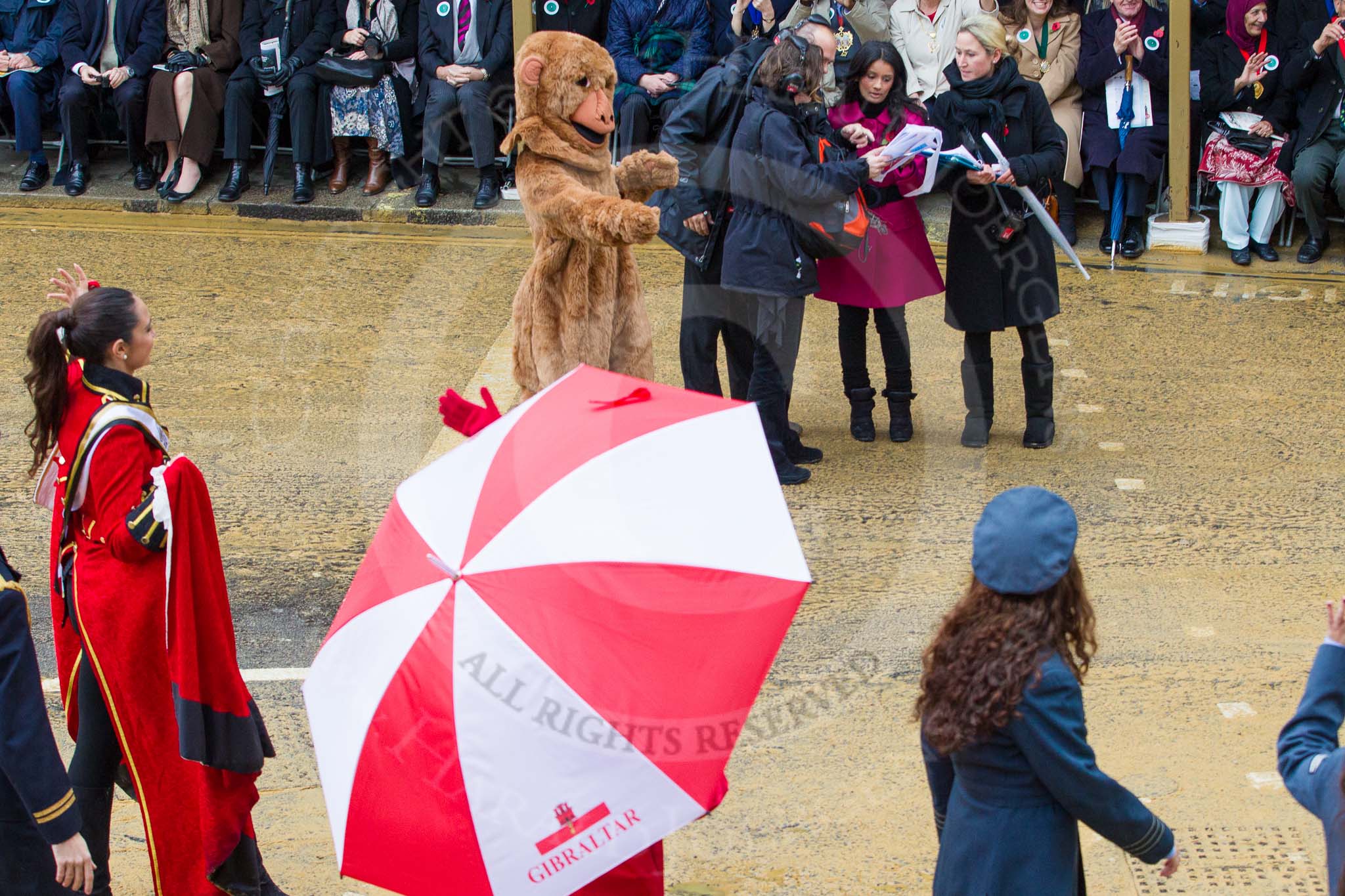 Lord Mayor's Show 2012: Entry 41 - Gibraltar, Gibraltarian students depicting the three main pillars of Gibraltar's economy: tourism, port activities, and finance.. Press stand opposite Mansion House, City of London, London, Greater London, United Kingdom, on 10 November 2012 at 11:17, image #587
