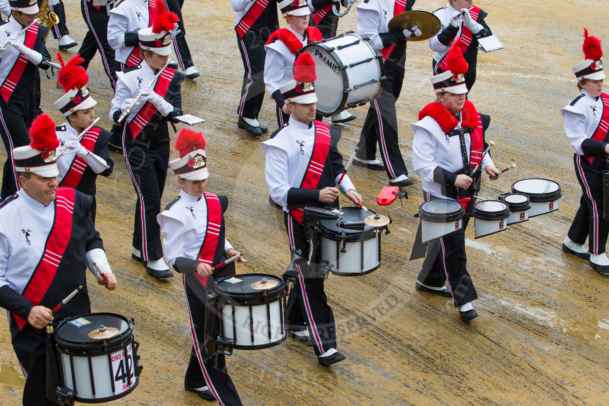 Lord Mayor's Show 2012: Entry 42 - Hertfordshire Showband, one of the most successful UK showbands: www.hertfordshire-showband.org.. Press stand opposite Mansion House, City of London, London, Greater London, United Kingdom, on 10 November 2012 at 11:18, image #597