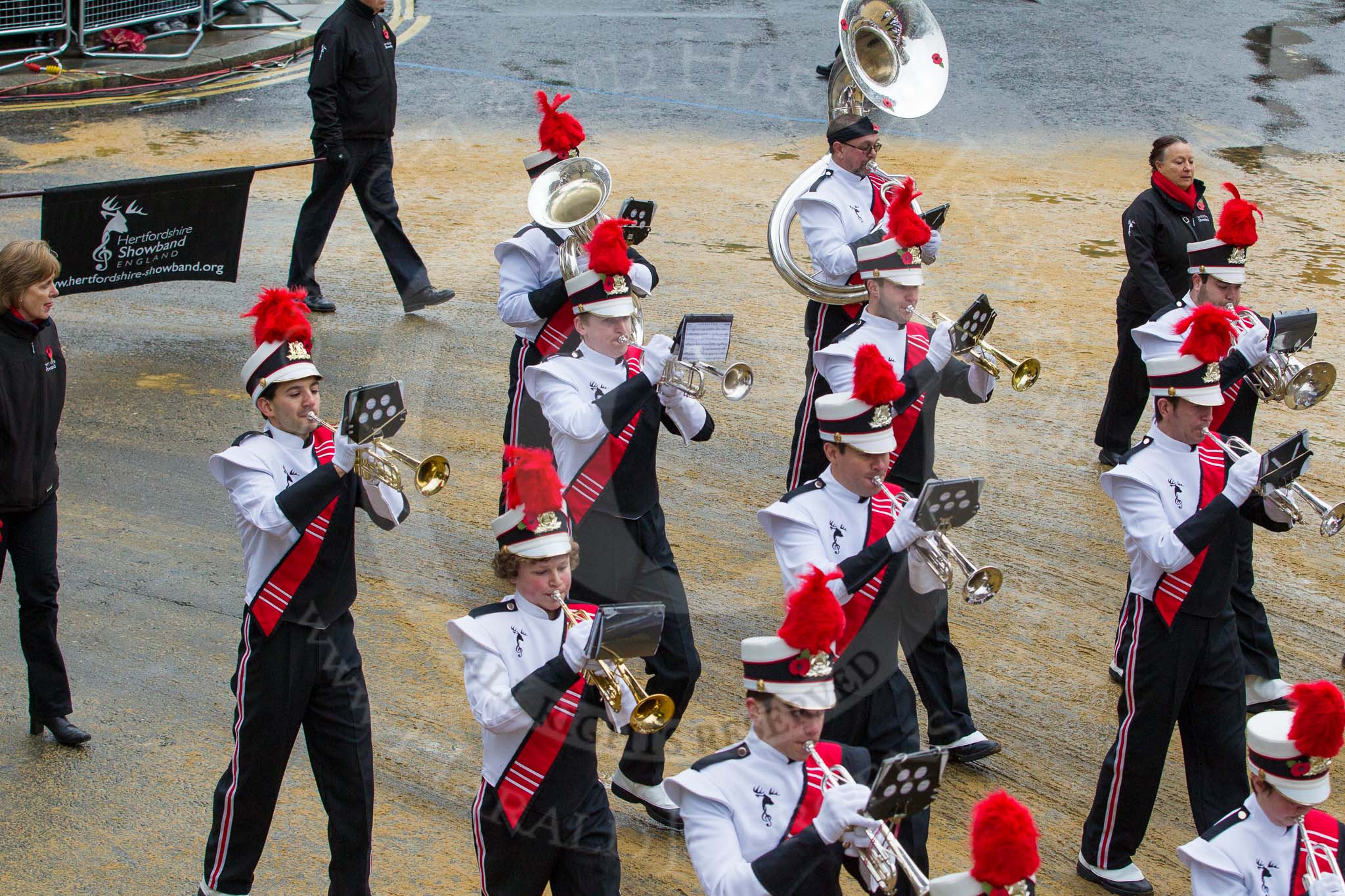 Lord Mayor's Show 2012: Entry 42 - Hertfordshire Showband, one of the most successful UK showbands: www.hertfordshire-showband.org.. Press stand opposite Mansion House, City of London, London, Greater London, United Kingdom, on 10 November 2012 at 11:18, image #599