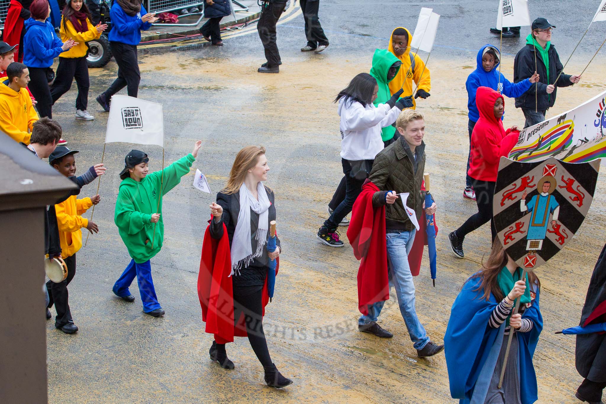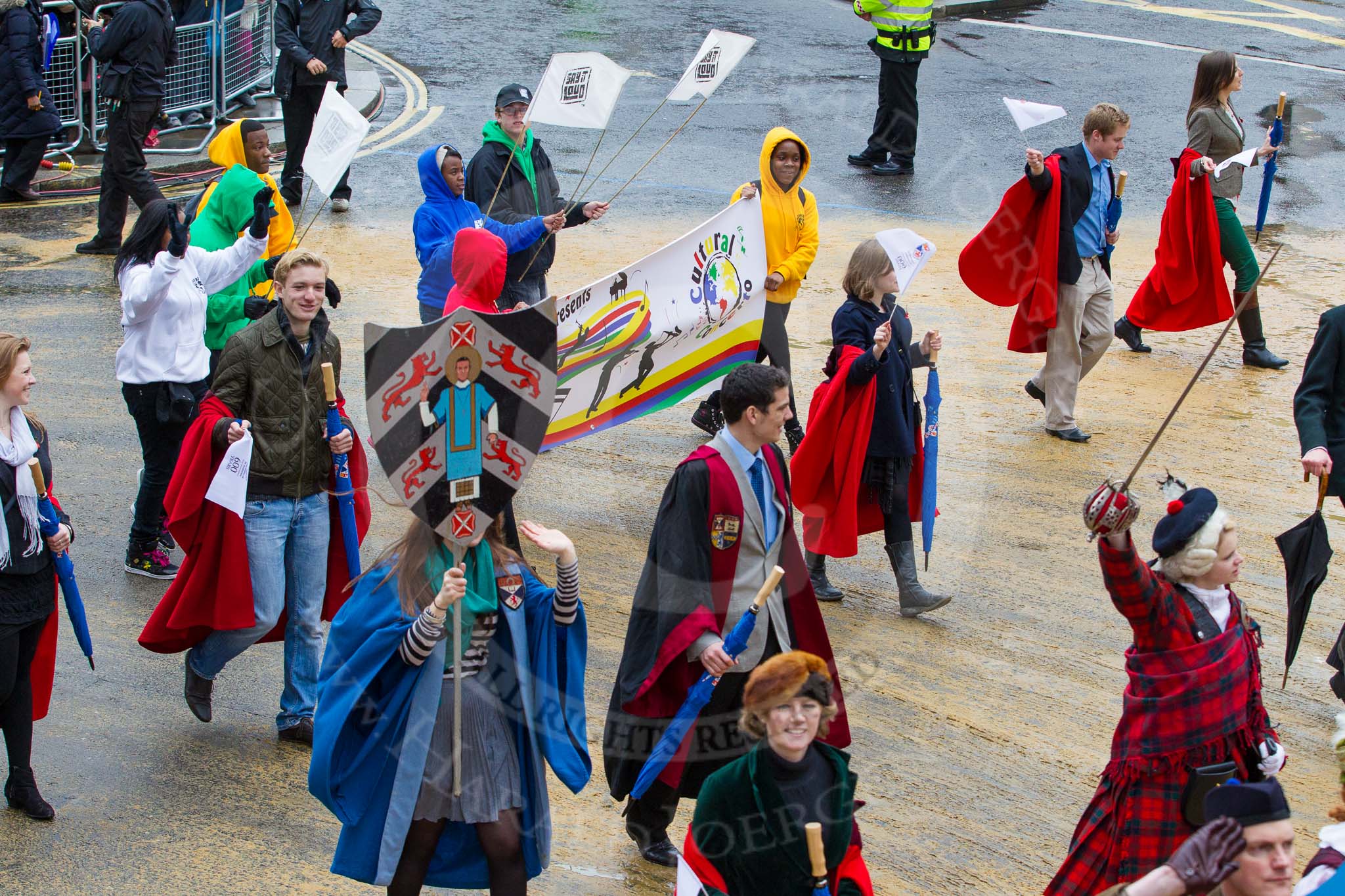 Lord Mayor's Show 2012: Entry 46 - University of St Andrews, celebrating its 600th anniversary and 47 - Say It Loud’s Cultural Concerto.. Press stand opposite Mansion House, City of London, London, Greater London, United Kingdom, on 10 November 2012 at 11:20, image #639