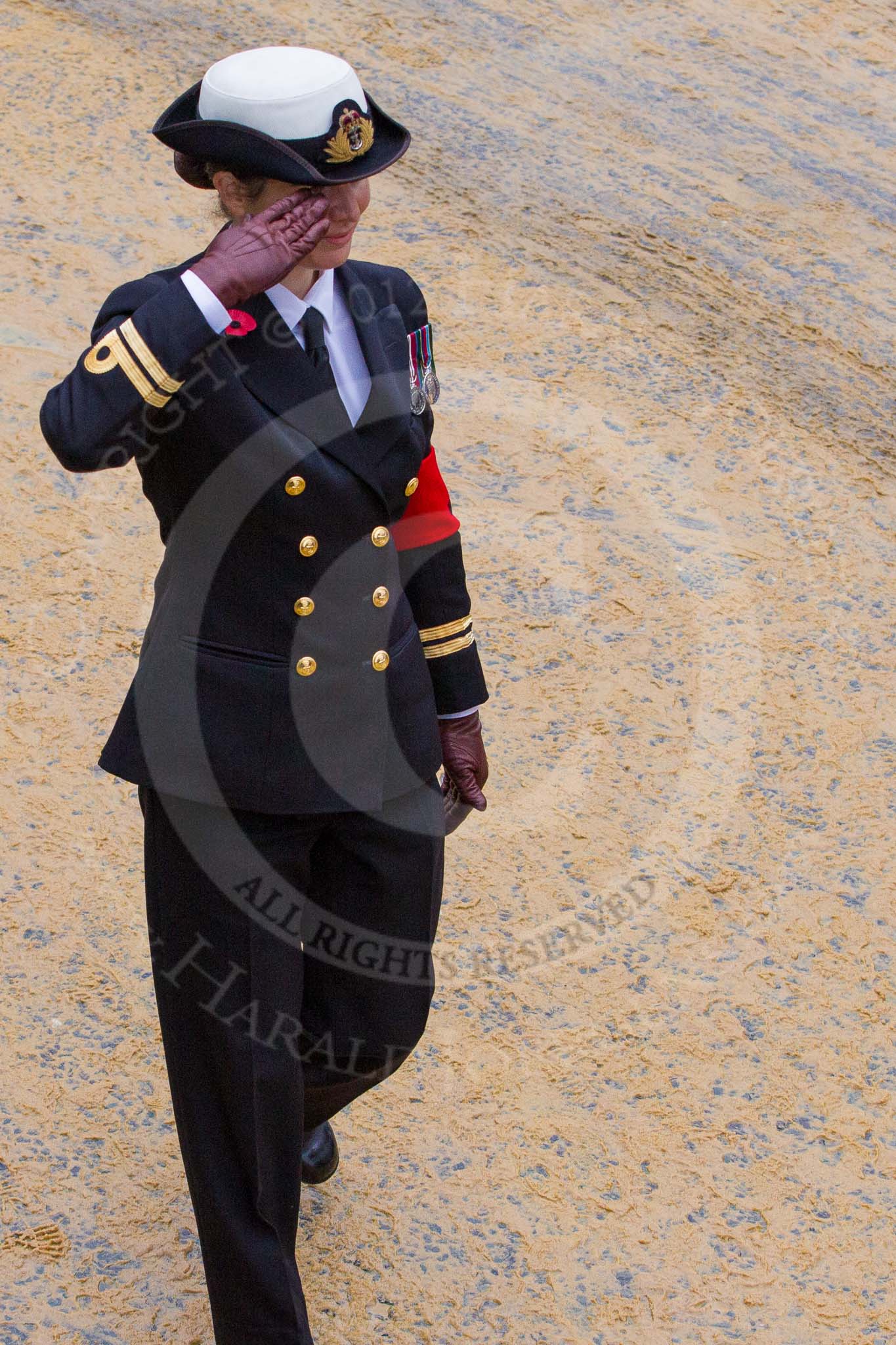 Lord Mayor's Show 2012: A Royal Navy Lieutenant acting as Marshall for the Lord Mayor's Show.. Press stand opposite Mansion House, City of London, London, Greater London, United Kingdom, on 10 November 2012 at 11:20, image #644