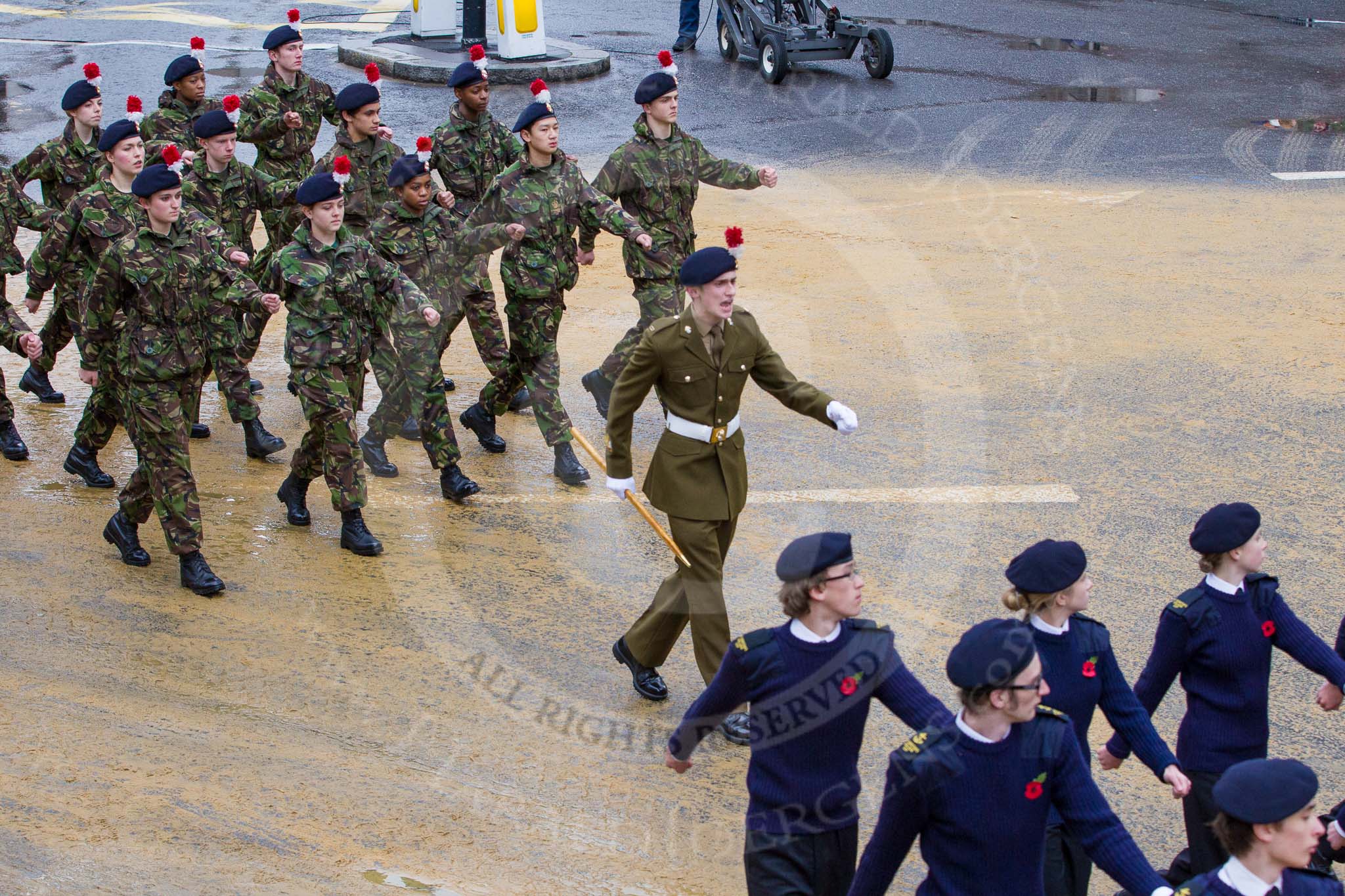 Lord Mayor's Show 2012: Entry 54 - St Dunstan’s CCF Band - the St Dunstan 's College Combined Cadet Force.. Press stand opposite Mansion House, City of London, London, Greater London, United Kingdom, on 10 November 2012 at 11:24, image #727