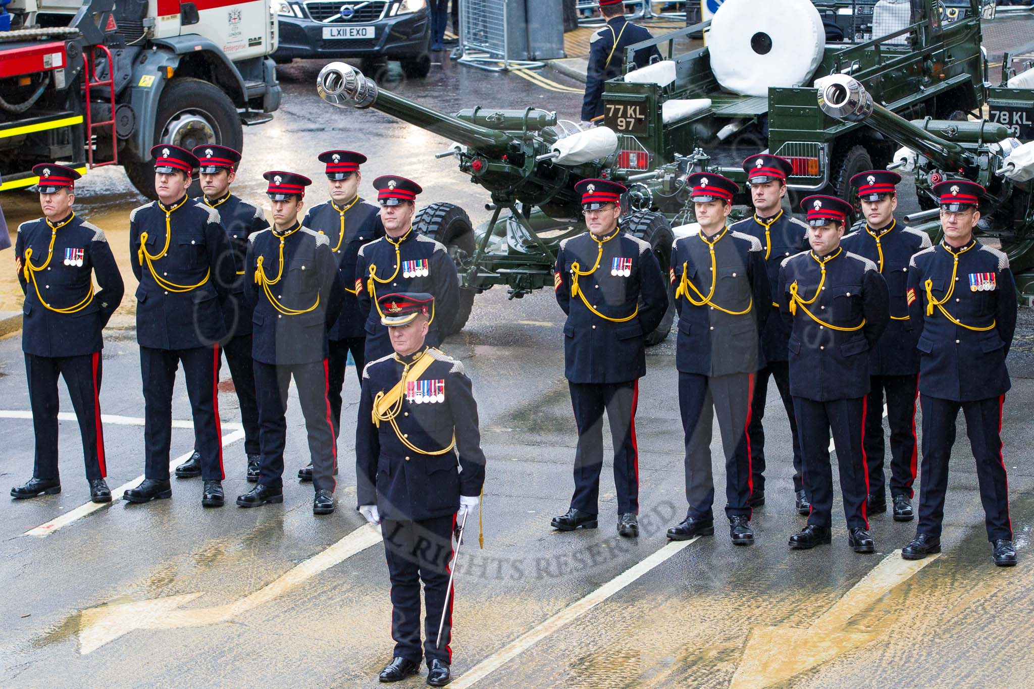 Lord Mayor's Show 2012: The Honourable Artillery Company (HAC) with their ceremonial 105 mm Light Guns.. Press stand opposite Mansion House, City of London, London, Greater London, United Kingdom, on 10 November 2012 at 10:19, image #61
