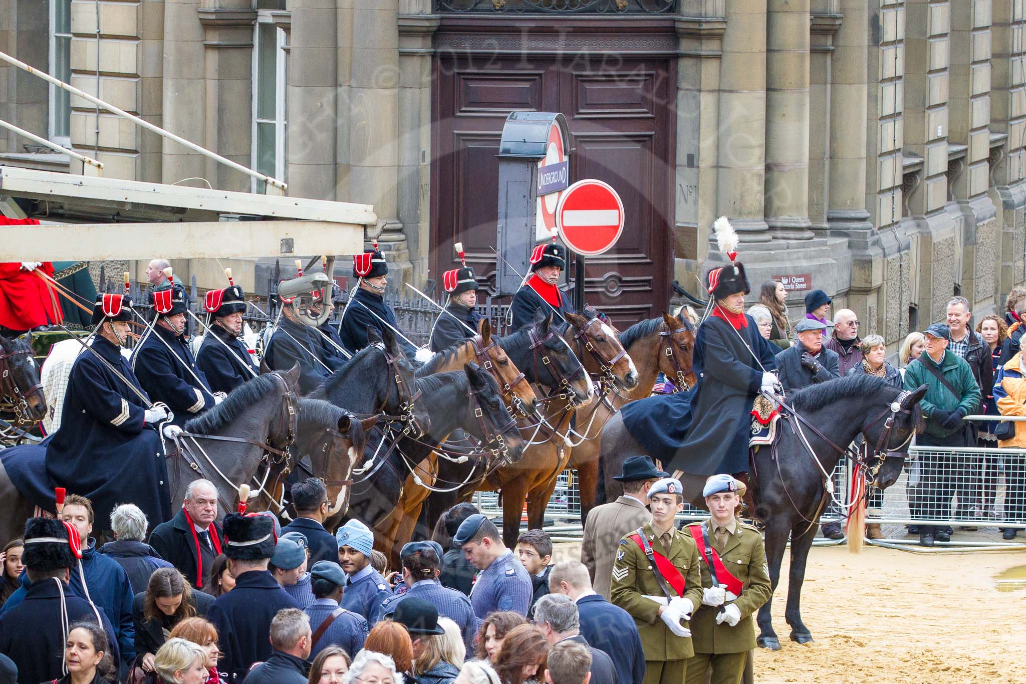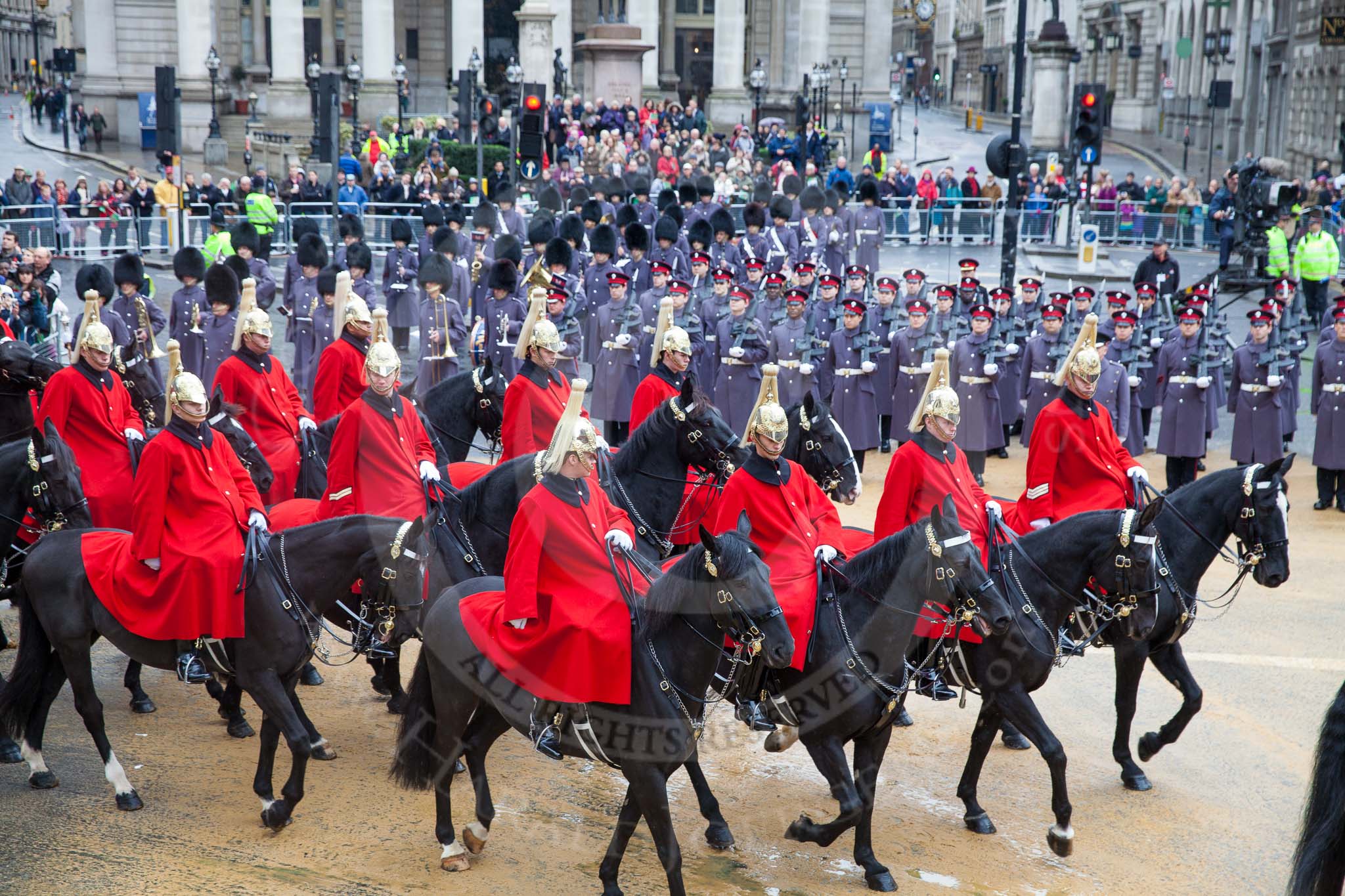 Lord Mayor's Show 2012: The Life Guards, Household Cavalry, leadng the way for the Lord Mayor.. Press stand opposite Mansion House, City of London, London, Greater London, United Kingdom, on 10 November 2012 at 10:48, image #120