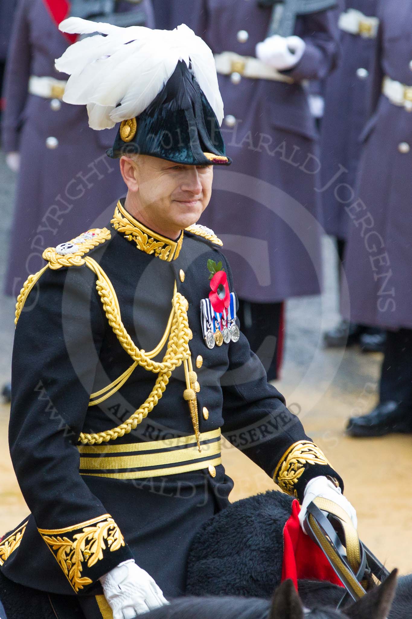 Lord Mayor's Show 2012: HRH Prince Michael of Kent and, on the left the Commanding Officer of the HAC, Lieutenant Colonel Howard Wilkinson.. Press stand opposite Mansion House, City of London, London, Greater London, United Kingdom, on 10 November 2012 at 10:45, image #112