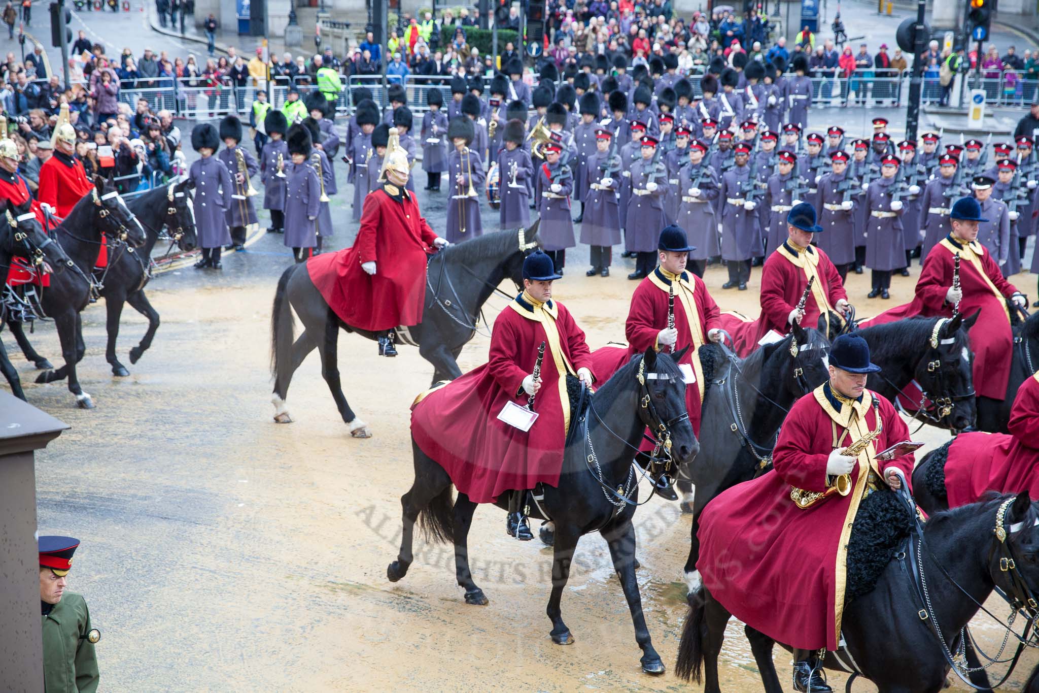 Lord Mayor's Show 2012: Household Cavalry musicians leading the way for the Lord Mayor.. Press stand opposite Mansion House, City of London, London, Greater London, United Kingdom, on 10 November 2012 at 10:48, image #119