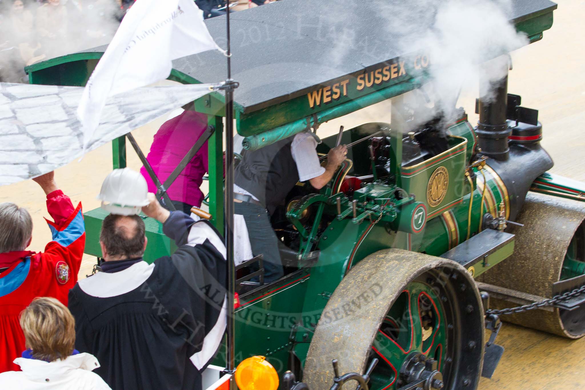 Lord Mayor's Show 2012: Entry 96 - Worshipful Company of Paviors, with a traditional steam roller.. Press stand opposite Mansion House, City of London, London, Greater London, United Kingdom, on 10 November 2012 at 11:43, image #1258