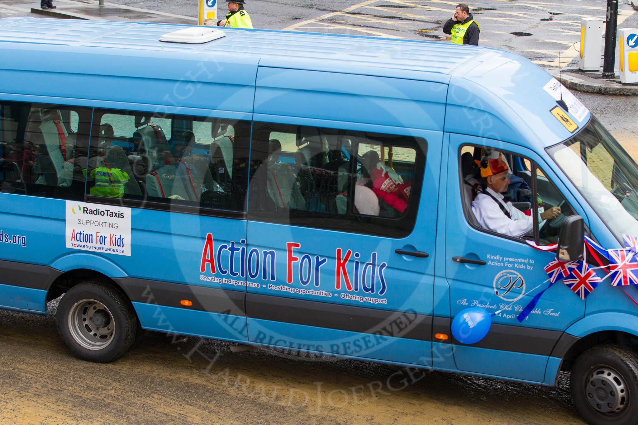 Lord Mayor's Show 2012: Entry 102 - Radio Taxis, supporting the charity Action for Kids.. Press stand opposite Mansion House, City of London, London, Greater London, United Kingdom, on 10 November 2012 at 11:49, image #1381