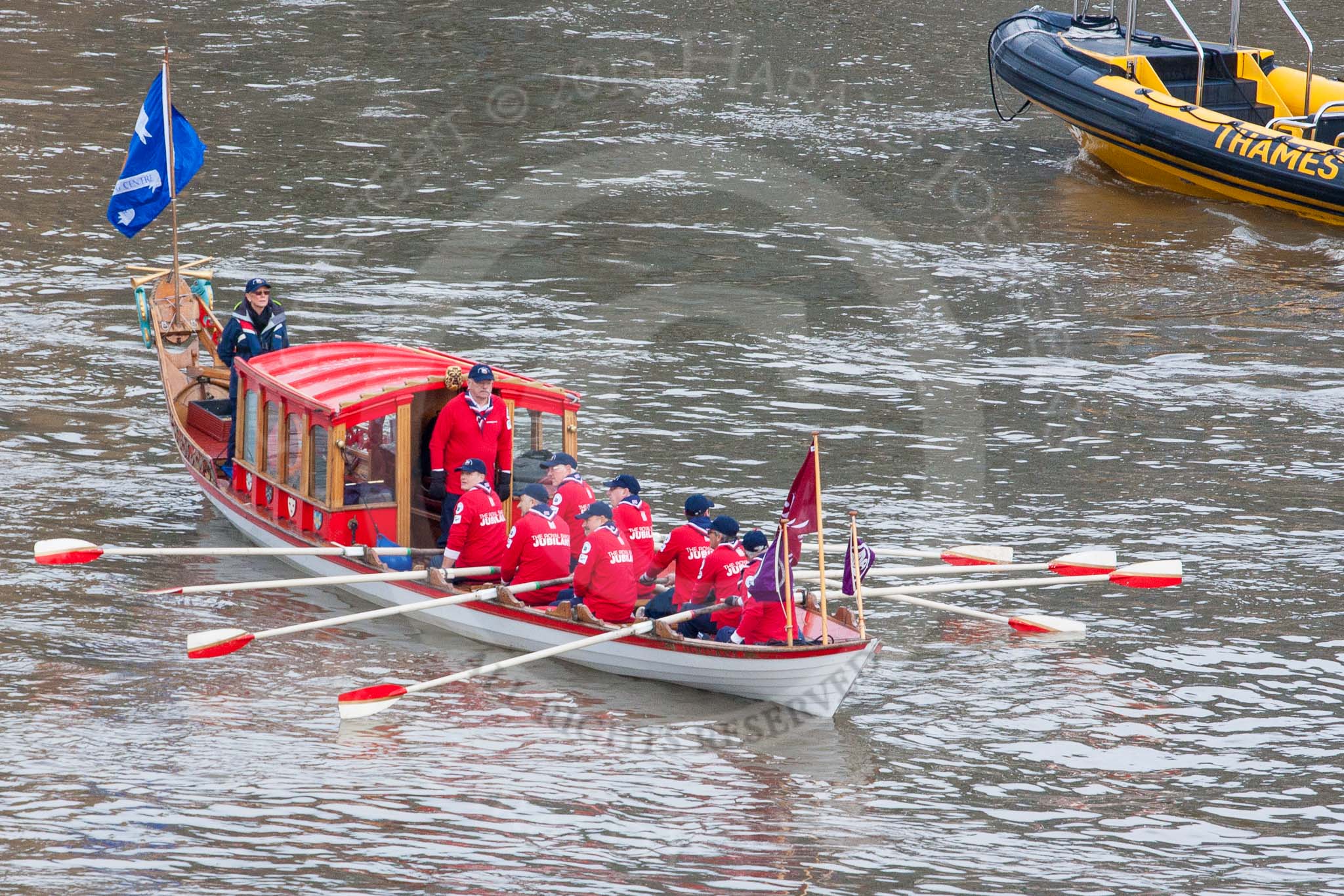 Lord Mayor's Show 2013: The Lord Mayor's flotilla, here cutter 'Lady Gillet', crewed by City of London (Port health). Photo be Mike Garland..