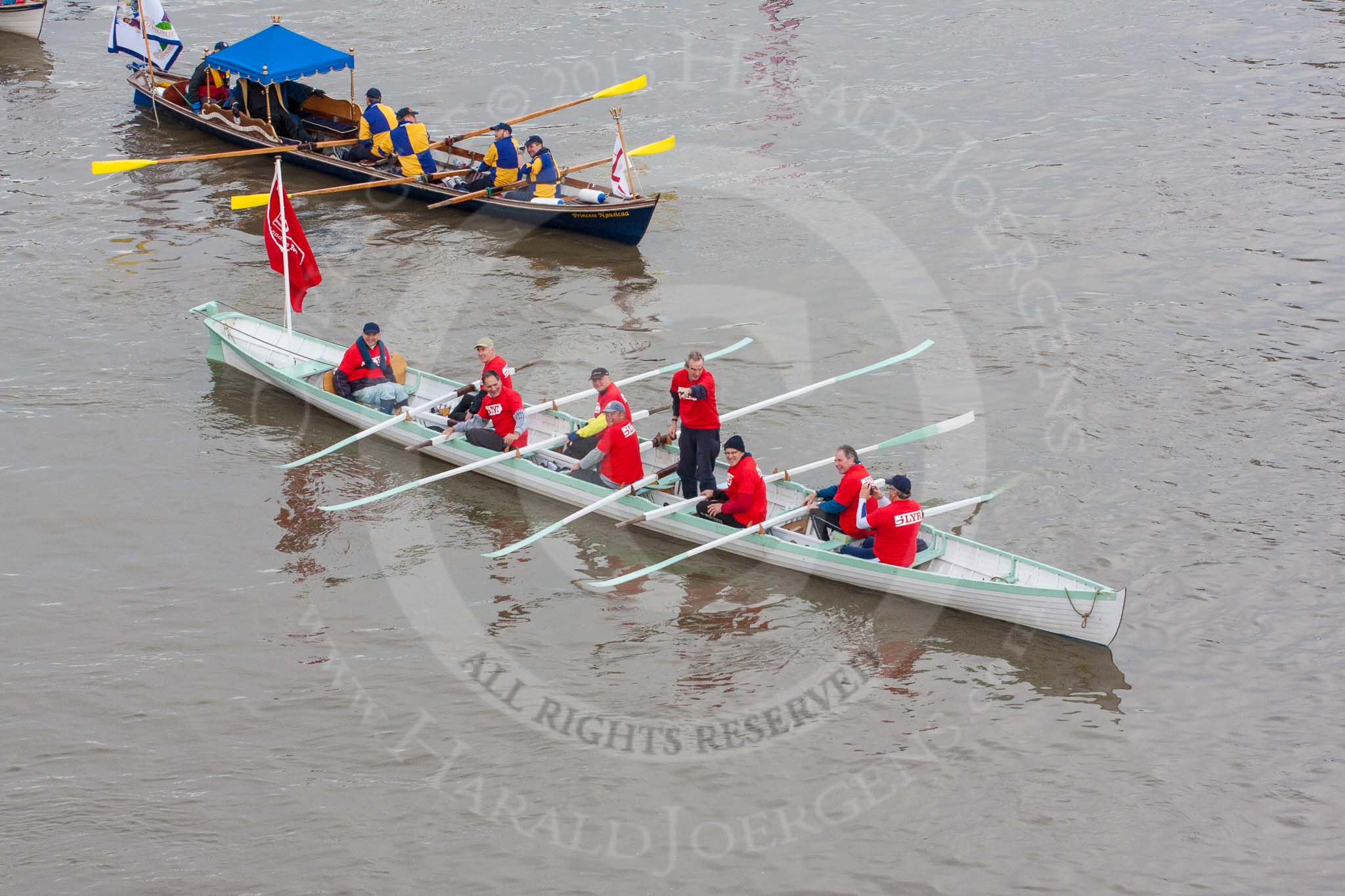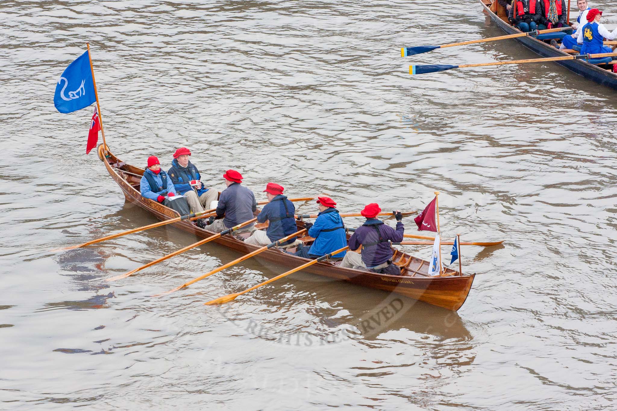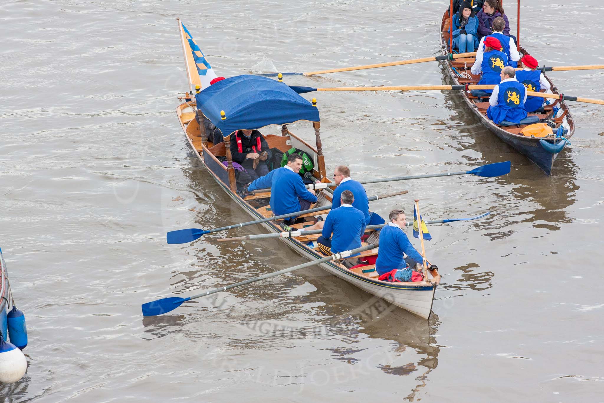 Lord Mayor's Show 2013: The Lord Mayor's flotilla, here shallop 'Sgian Dubh', crewed by TTBS. Photo be Mike Garland..