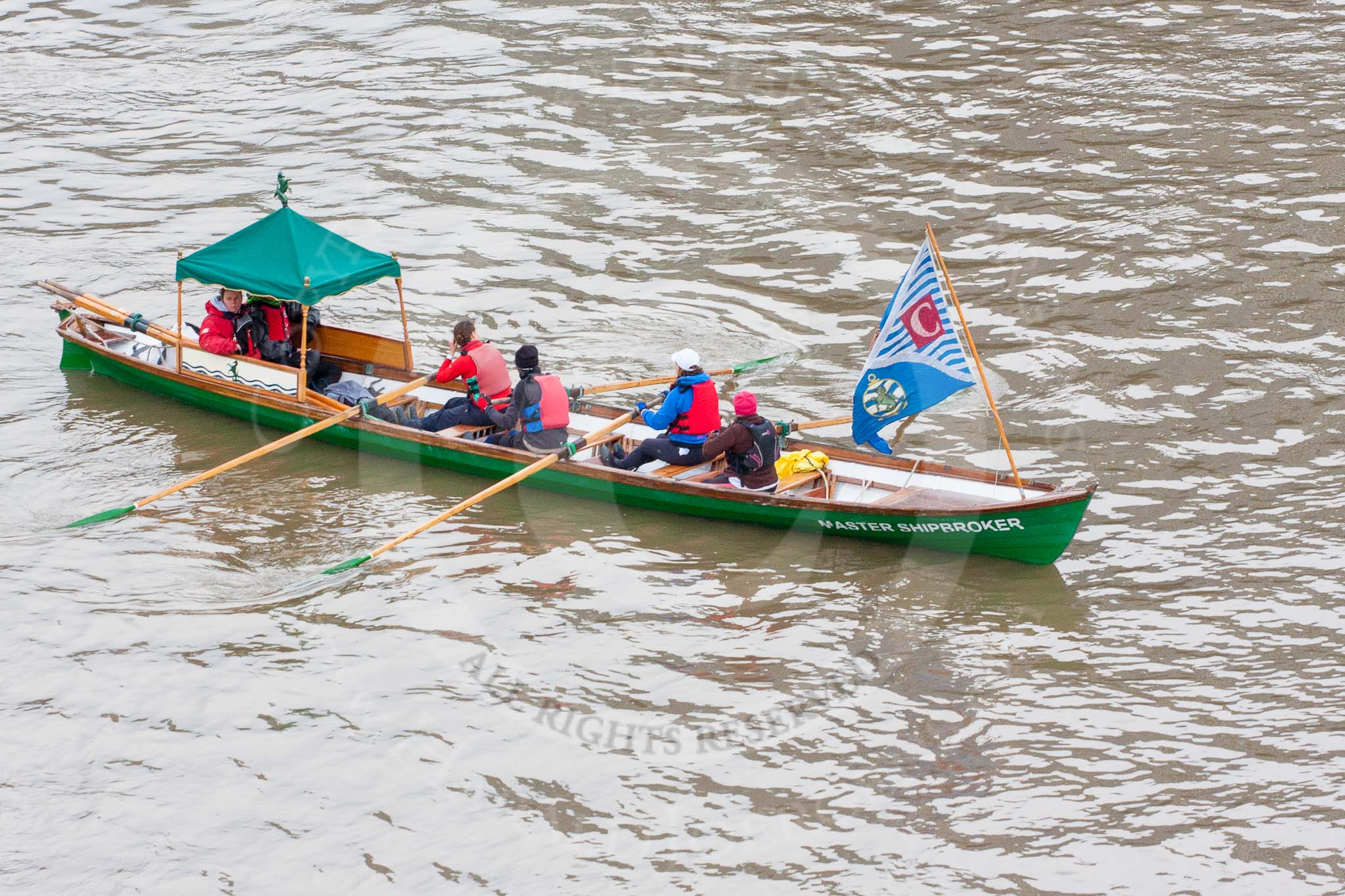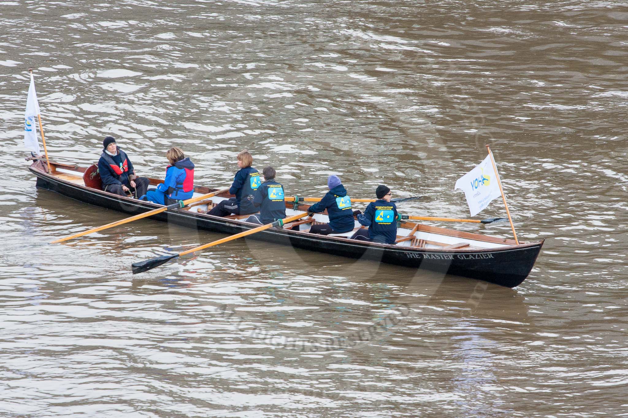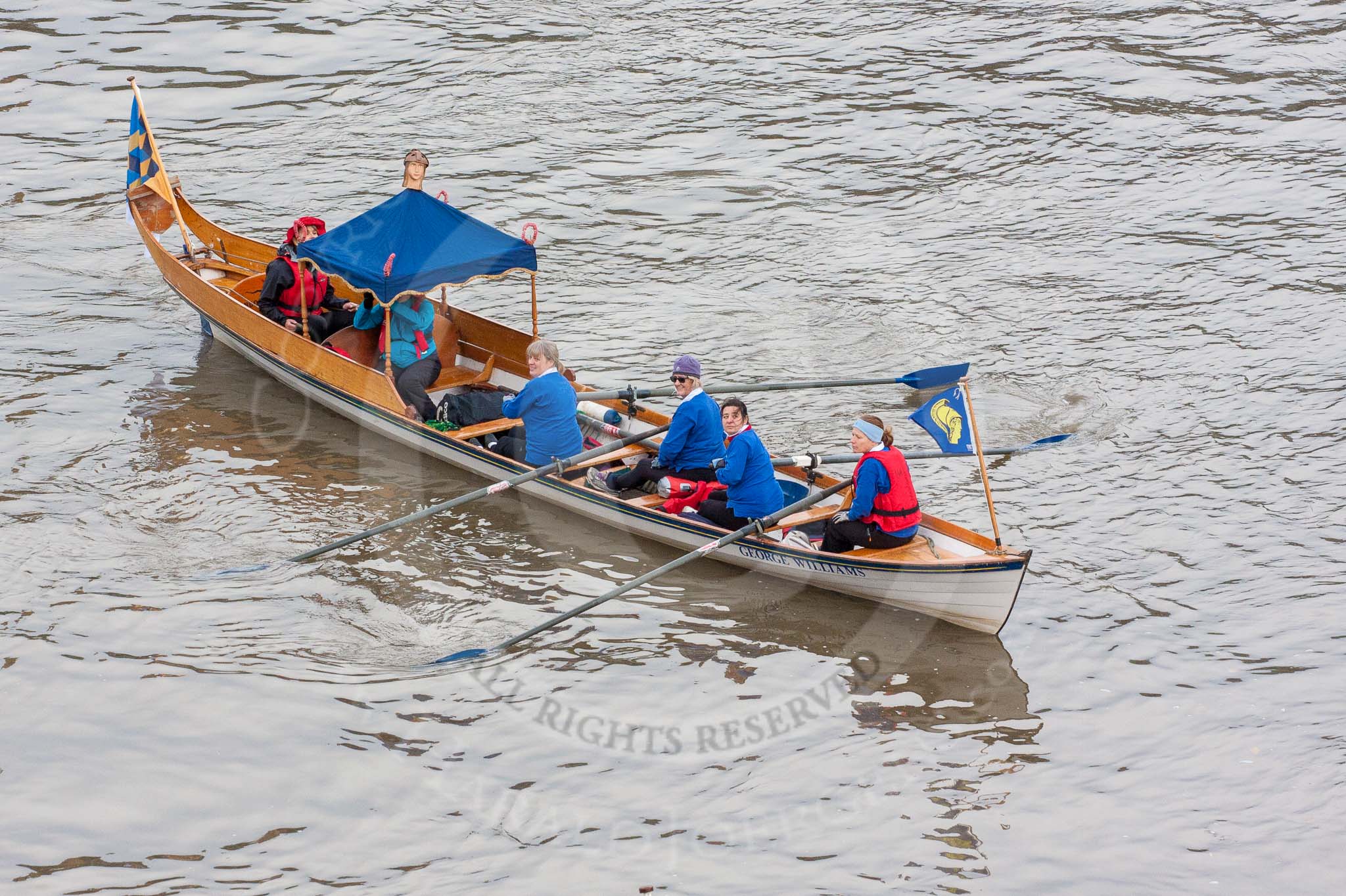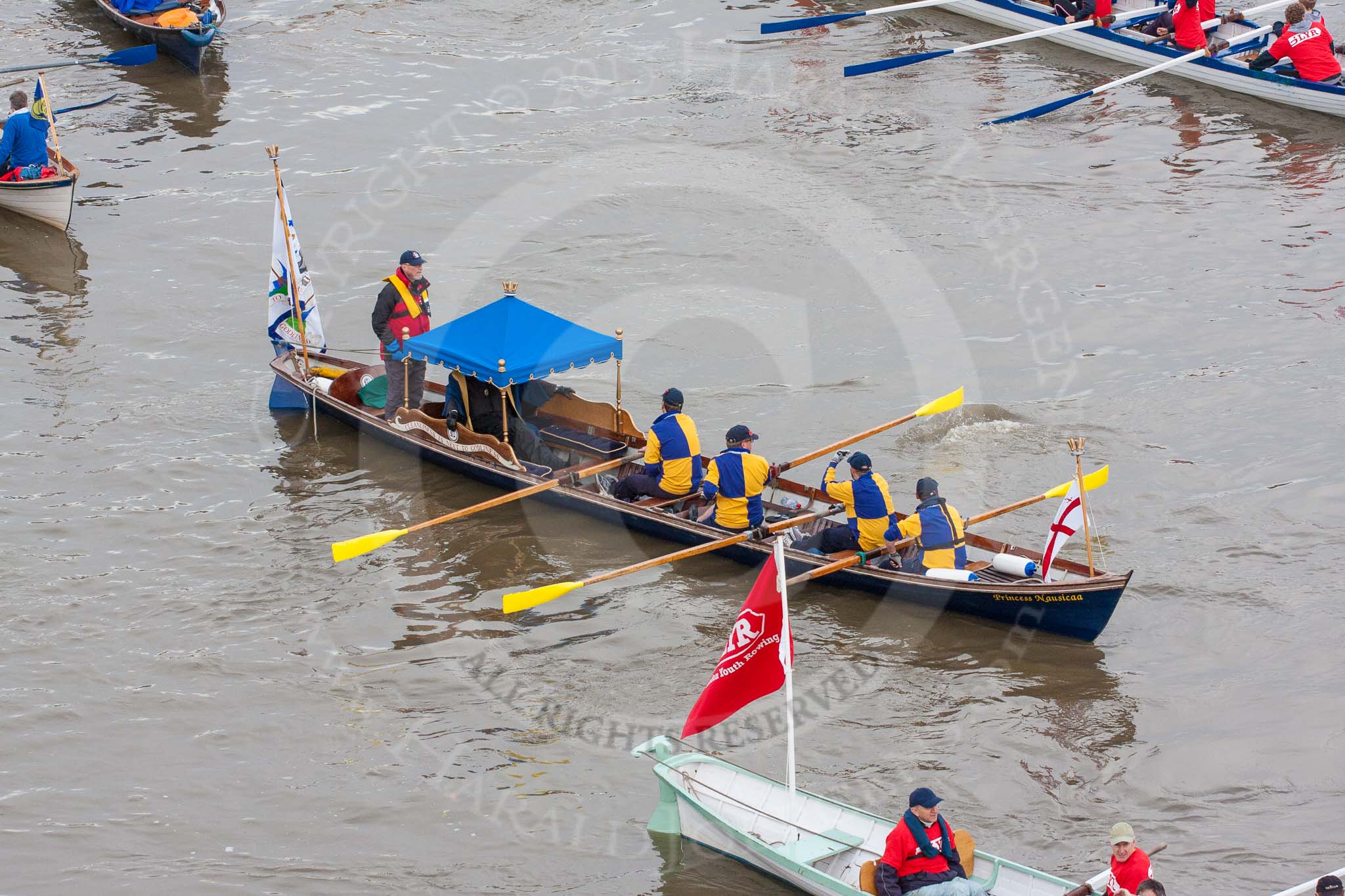 Lord Mayor's Show 2013: The Lord Mayor's flotilla, here shallop 'Sgian Dubh', crewed by TTBS. Photo be Mike Garland..