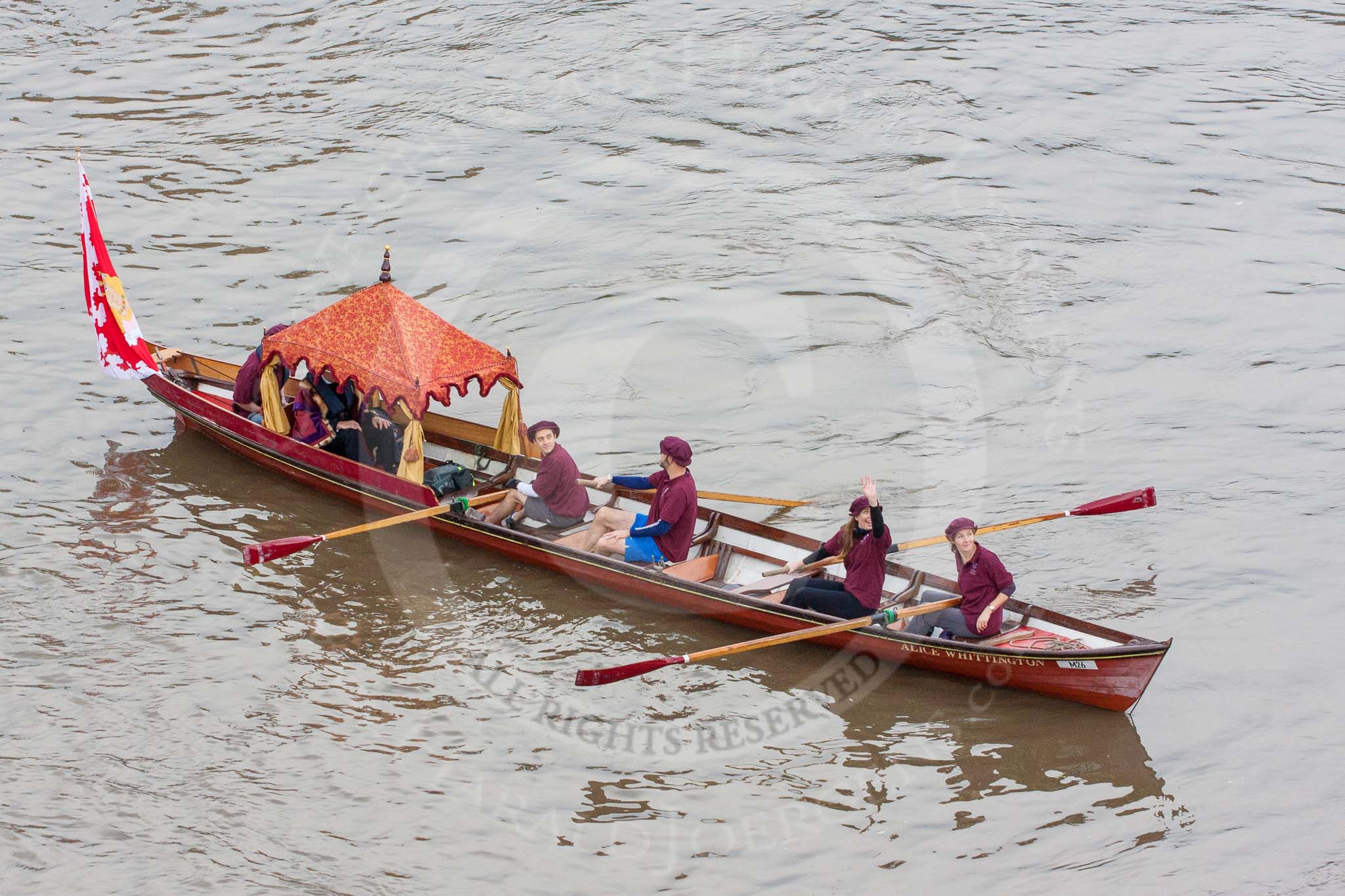 Lord Mayor's Show 2013: The Lord Mayor's flotilla, here cutter 'Alice Whittington', crewed by the Mercer's Company. Photo be Mike Garland..