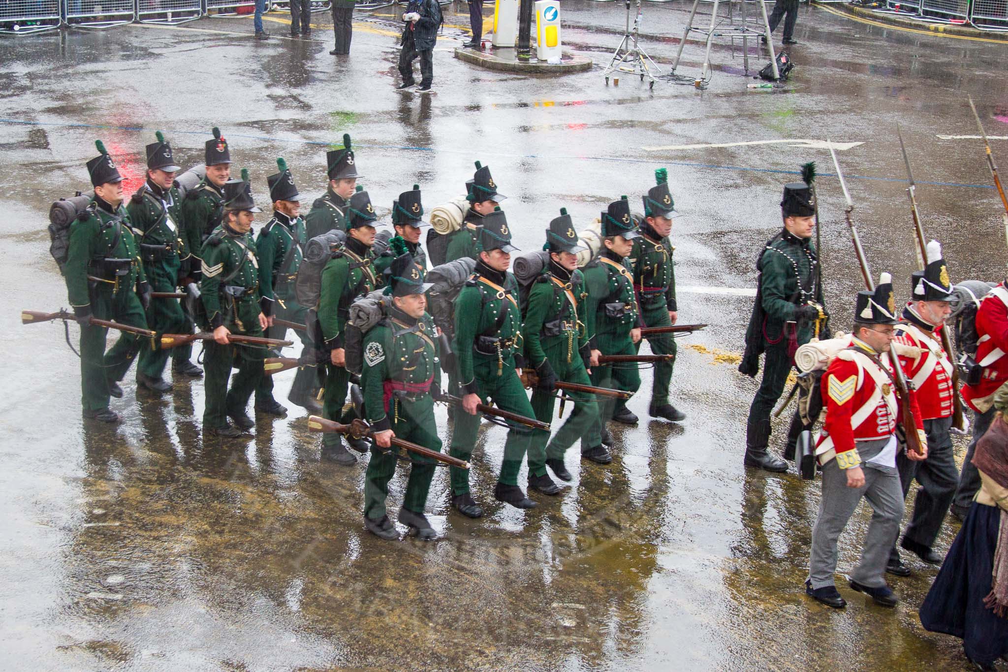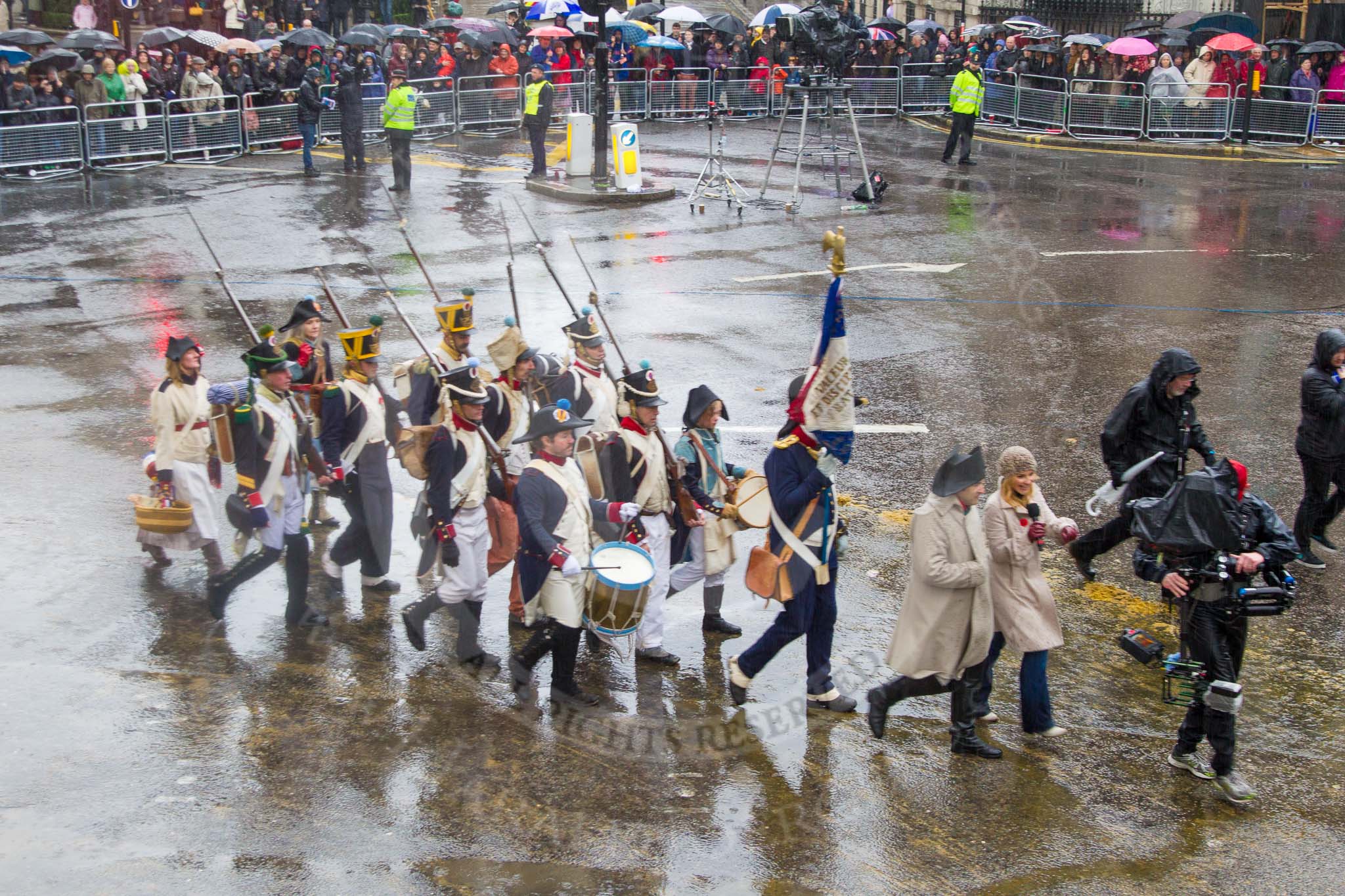 Lord Mayor's Show 2013: 88-The Belgain Tourist Board Road to Waterloo 200-the Napoleonic Association supports people with a common interest in the period from Freanch Revolution to the Battle of Waterloo in 1815.. Press stand opposite Mansion House, City of London, London, Greater London, United Kingdom, on 09 November 2013 at 11:48, image #1083