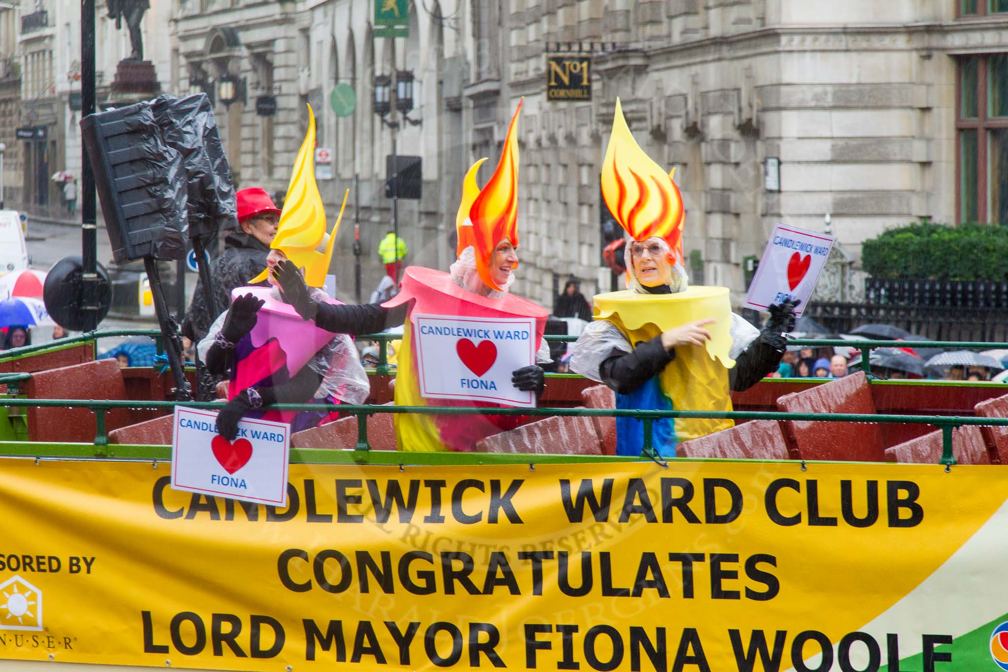 Lord Mayor's Show 2013: 106- Candlewick Ward- it is the oldest active Ward Club and today has a membership of 2150.. Press stand opposite Mansion House, City of London, London, Greater London, United Kingdom, on 09 November 2013 at 11:56, image #1237