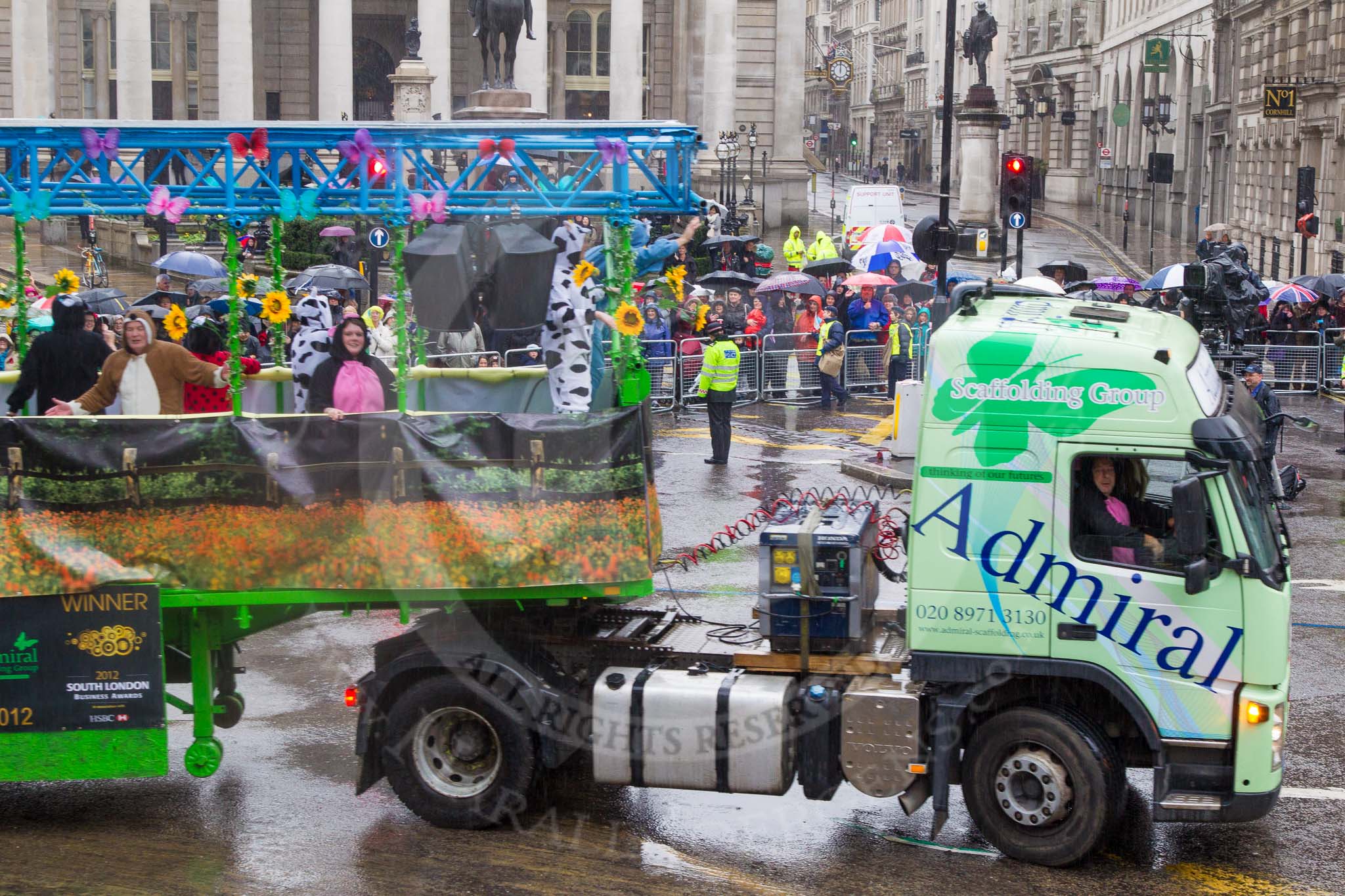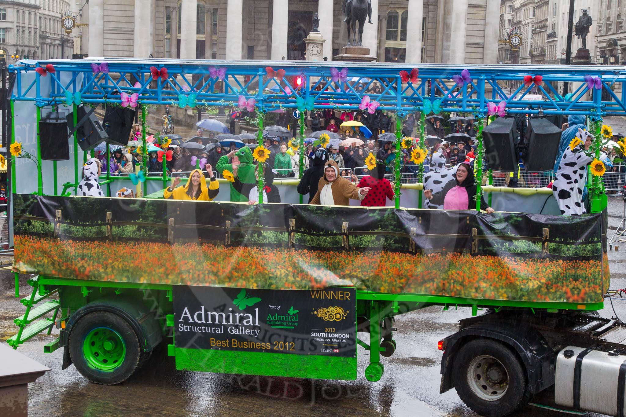 Lord Mayor's Show 2013: 113-Admiral Scaffolding-group at this year is promoting British meadows with a special take on 'It's Bug life'.. Press stand opposite Mansion House, City of London, London, Greater London, United Kingdom, on 09 November 2013 at 12:01, image #1312