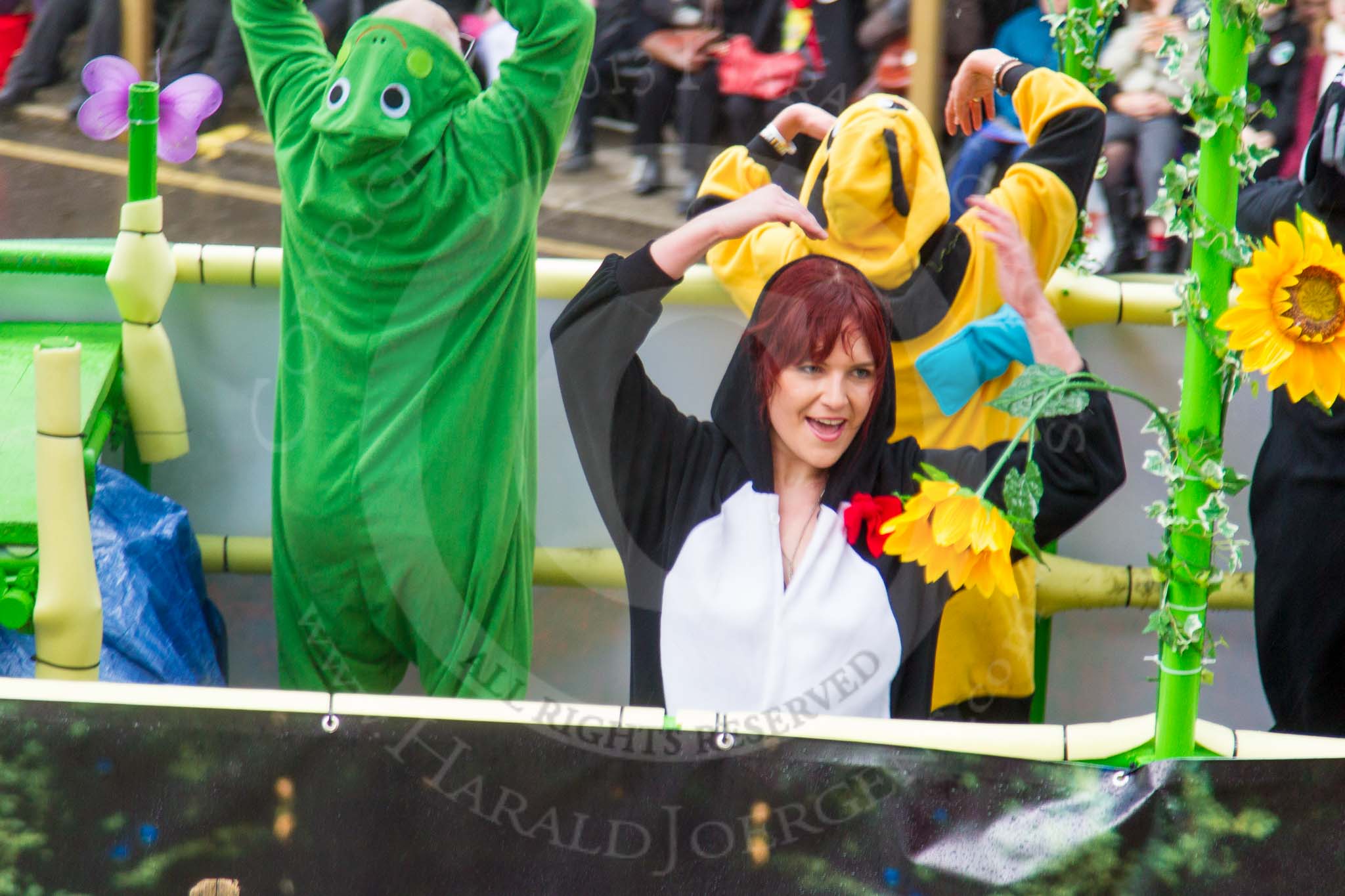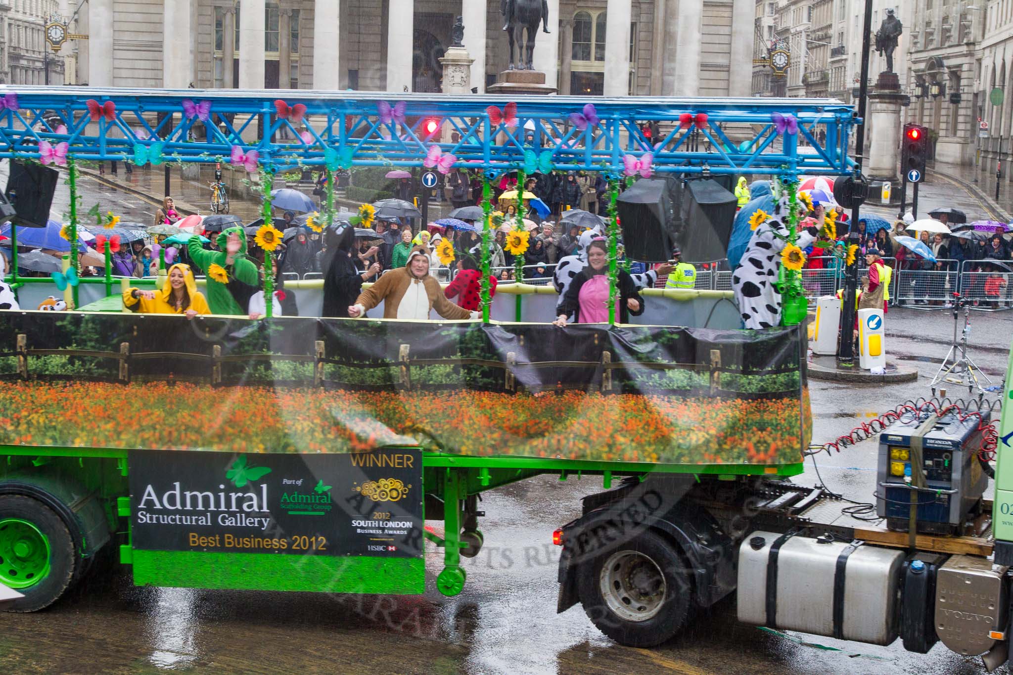 Lord Mayor's Show 2013: 113-Admiral Scaffolding-group at this year is promoting British meadows with a special take on 'It's Bug life'.. Press stand opposite Mansion House, City of London, London, Greater London, United Kingdom, on 09 November 2013 at 12:01, image #1311