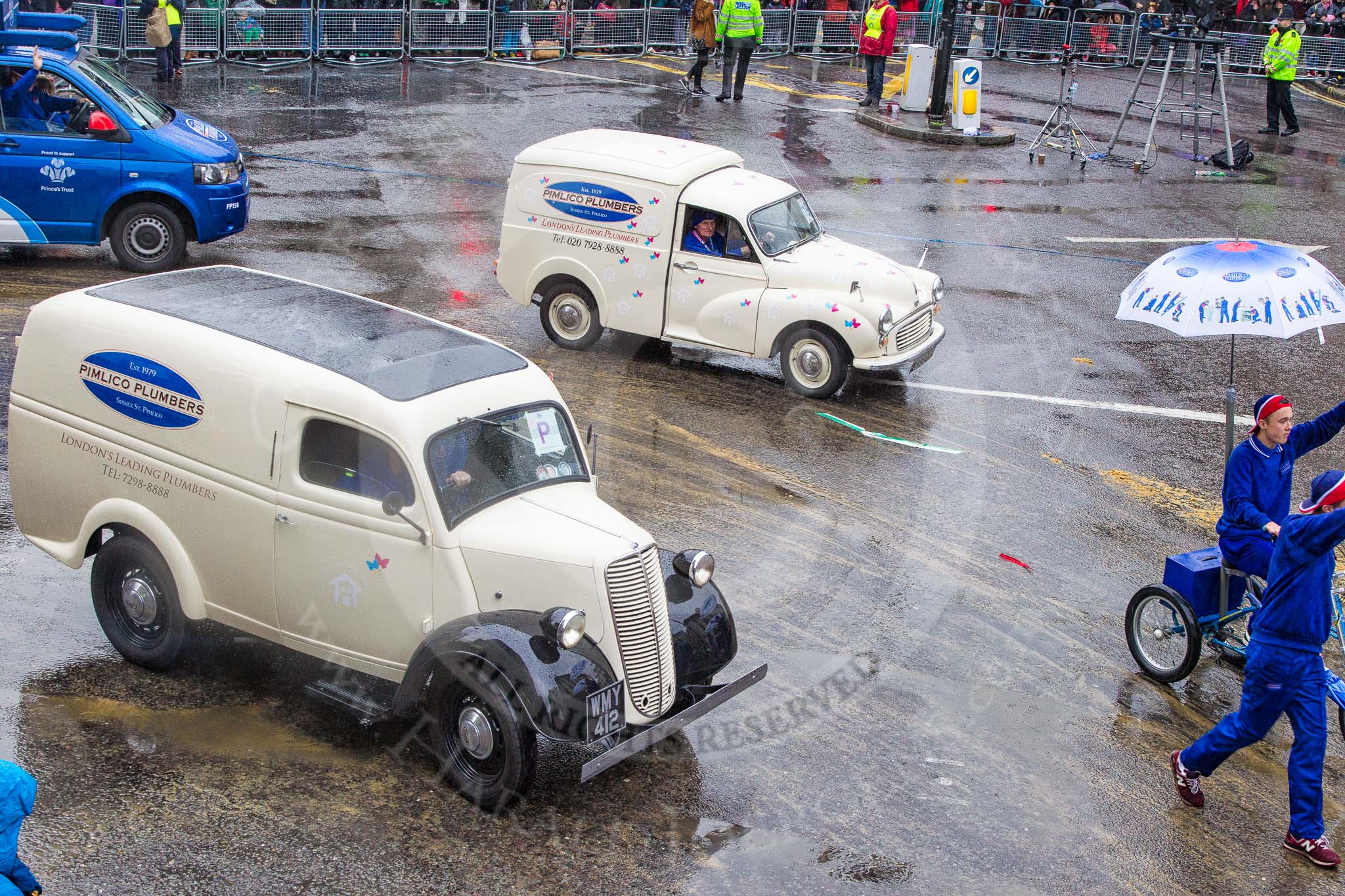 Lord Mayor's Show 2013: 119-Pimlico Plumbers-it is capital's largest independent service company. Pimlico is a Patron of the Prince's Trust. This year they bring a parade of new and vintage vehicles.. Press stand opposite Mansion House, City of London, London, Greater London, United Kingdom, on 09 November 2013 at 12:04, image #1350