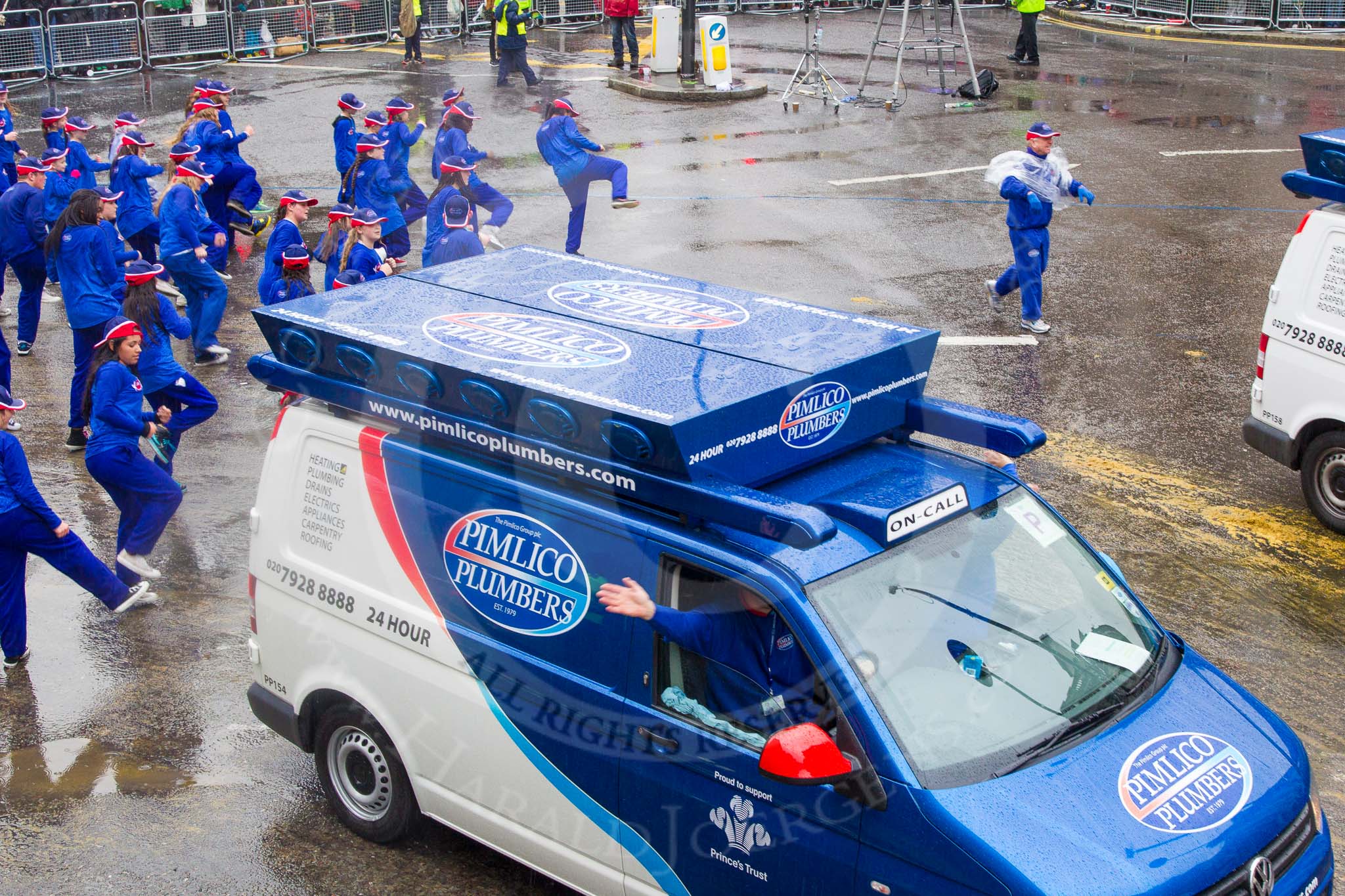Lord Mayor's Show 2013: 119-Pimlico Plumbers-it is capital's largest independent service company. Pimlico is a Patron of the Prince's Trust. This year they bring a parade of new and vintage vehicles.. Press stand opposite Mansion House, City of London, London, Greater London, United Kingdom, on 09 November 2013 at 12:04, image #1348