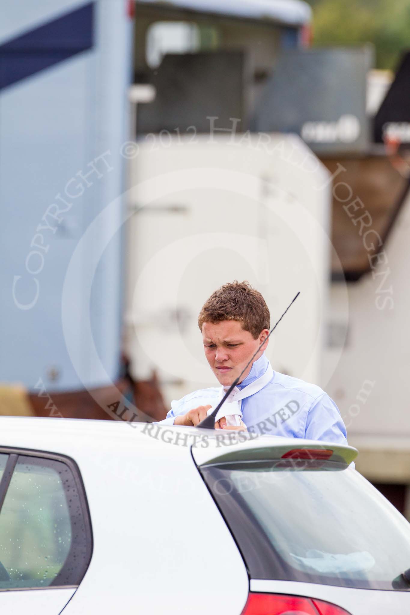 7th Heritage Polo Cup semi-finals: La Mariposa Argentina Alex Vent finding the spin to put on his new T.M.Lewin Luxury Tie..