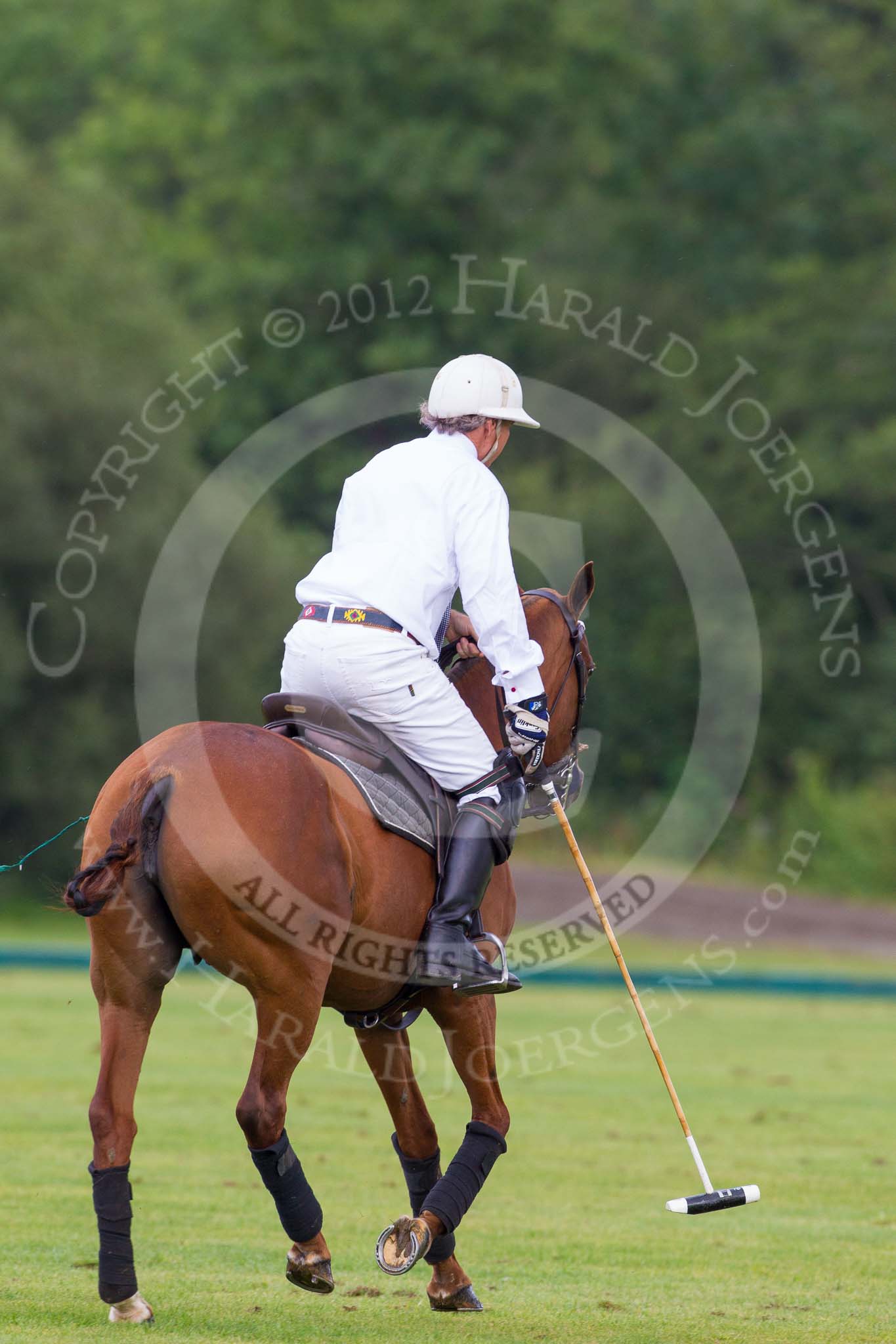 7th Heritage Polo Cup semi-finals: La Golondrina Argentina Polo Patron Paul Oberschneider in T.M.Lewin LuxuryWhite Twill Shirt taking a full swing..