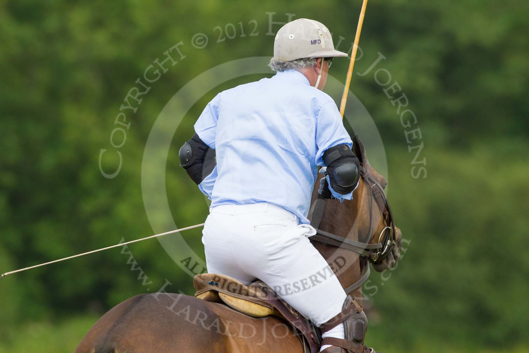7th Heritage Polo Cup semi-finals: La Mariposa Argentina - Mariano striking a nearside back..