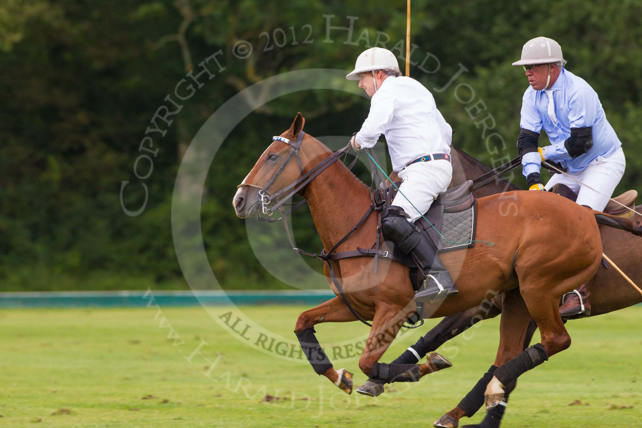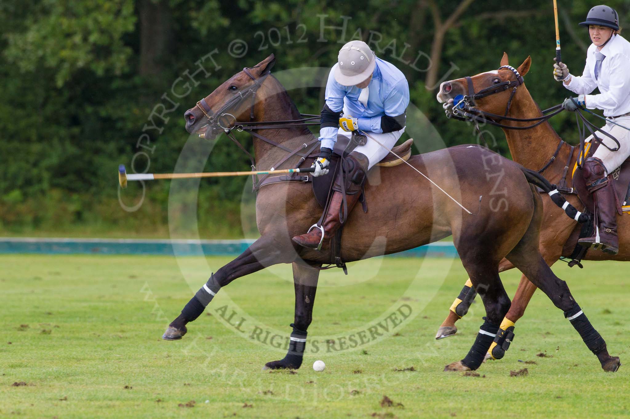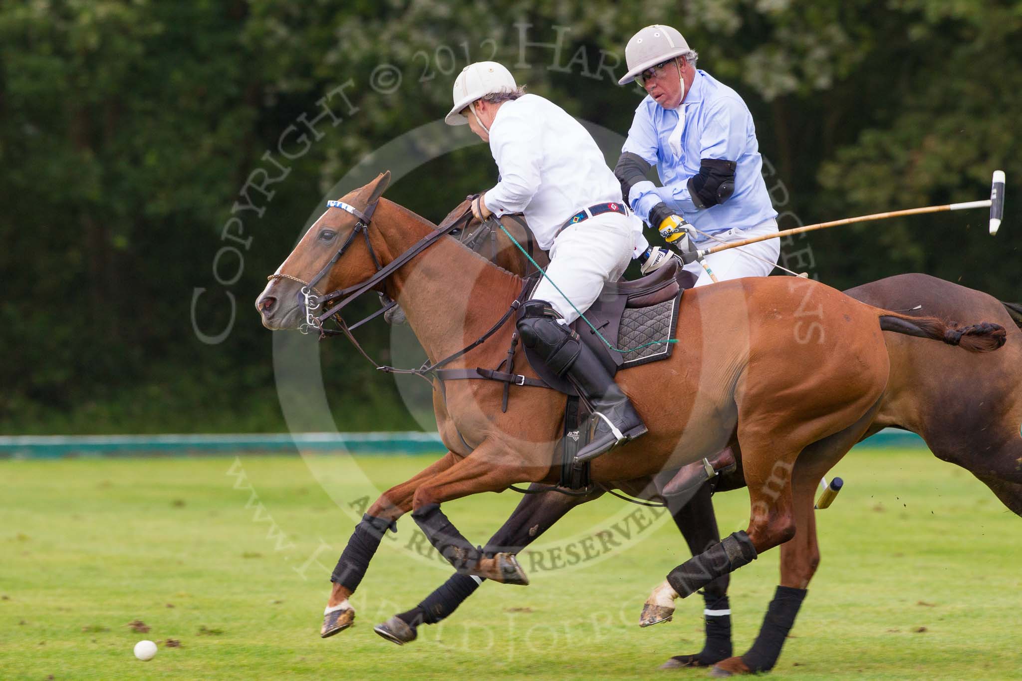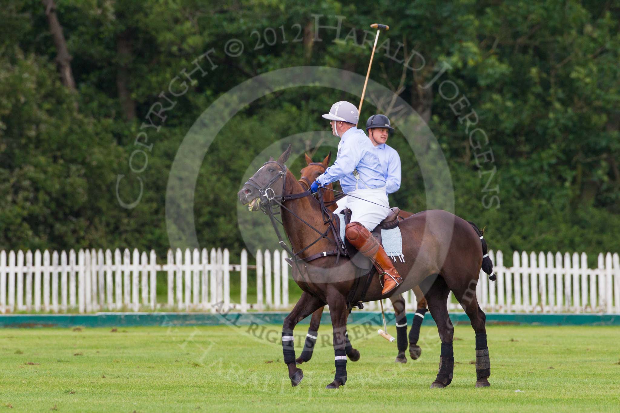 7th Heritage Polo Cup semi-finals: La Mariposa Argentina Mariano Darritchon riding back to centre with Timothy Rose..