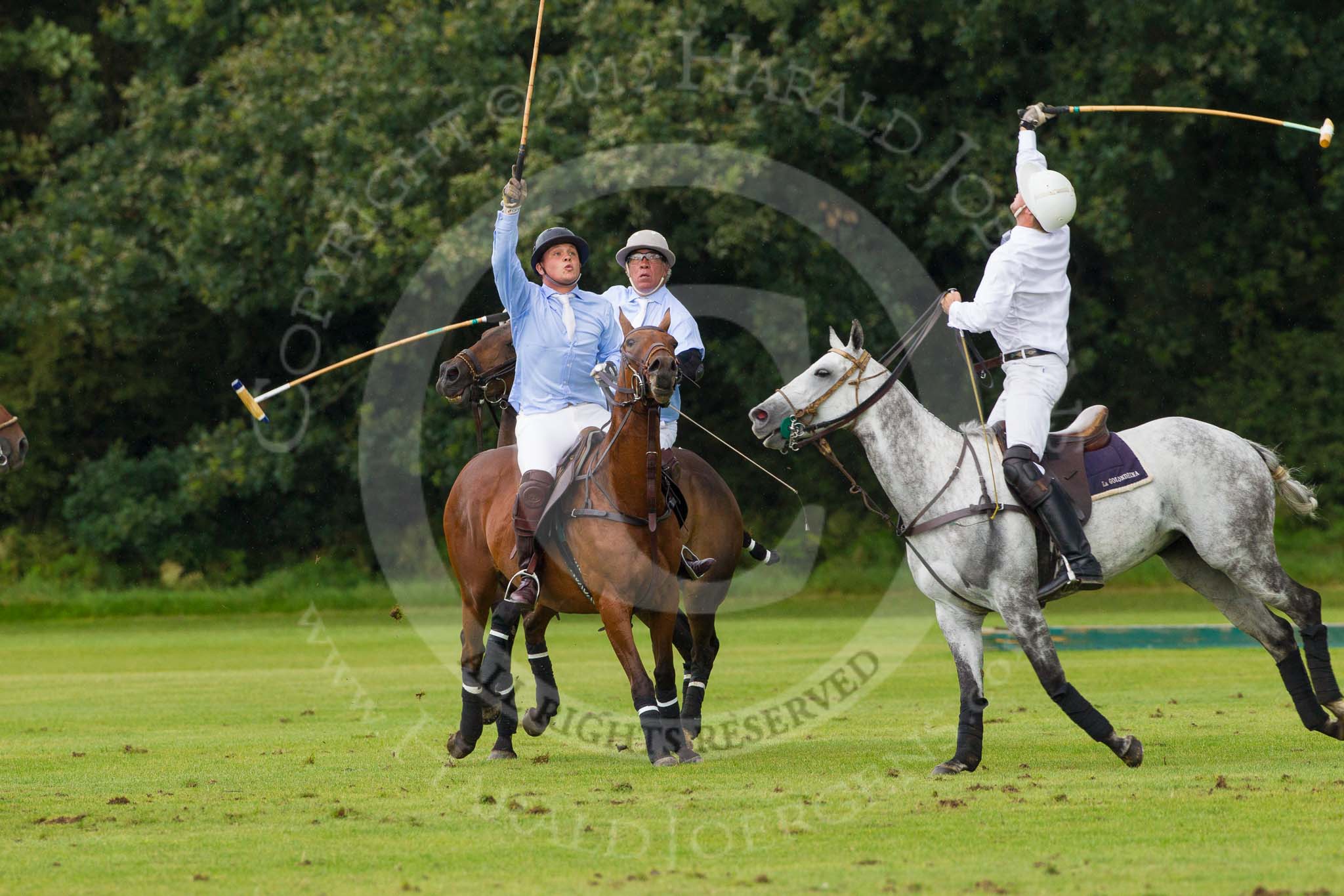 7th Heritage Polo Cup semi-finals: Alex Vent looking at the ball in the air aside Pedro Harrison..