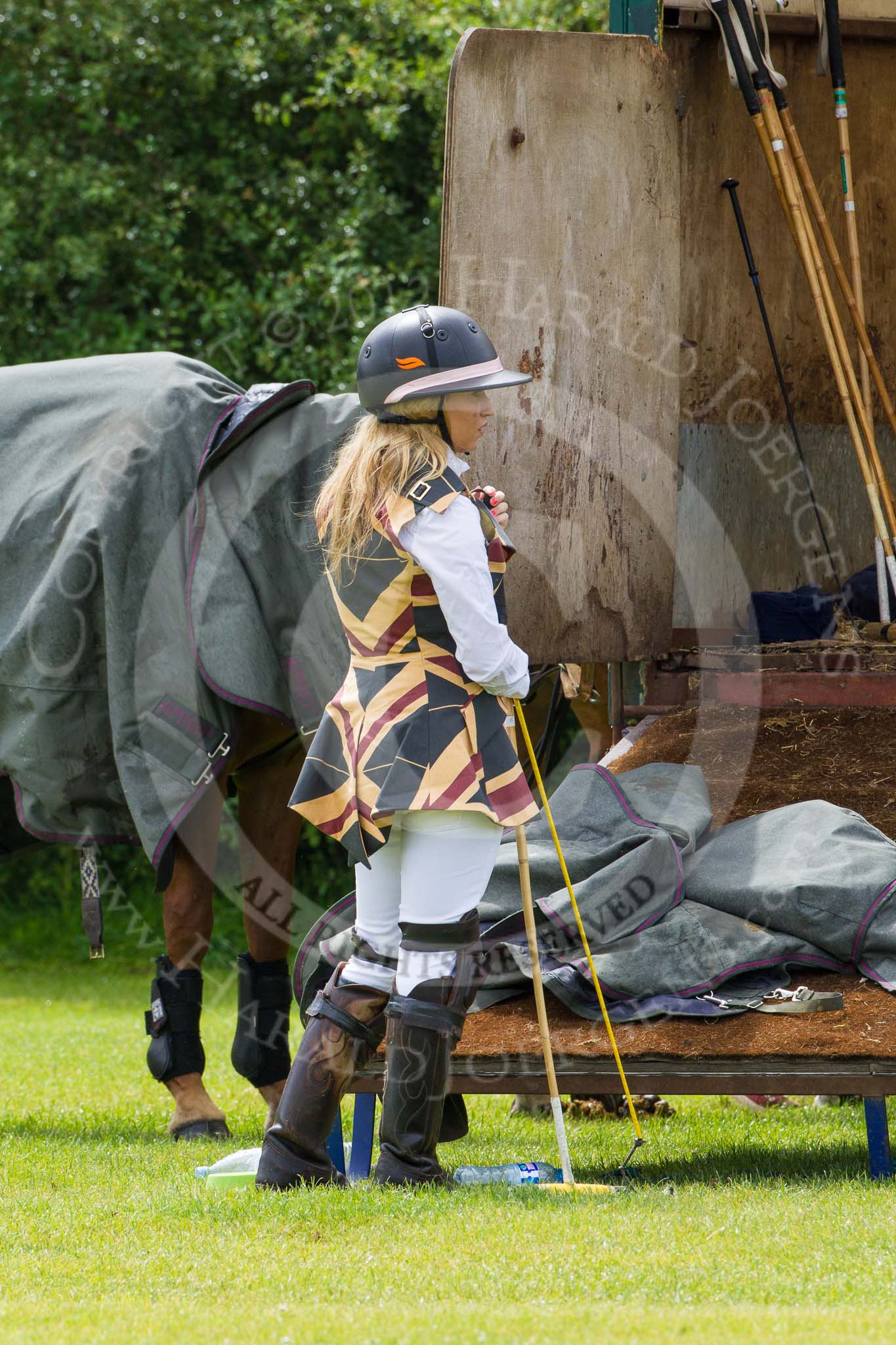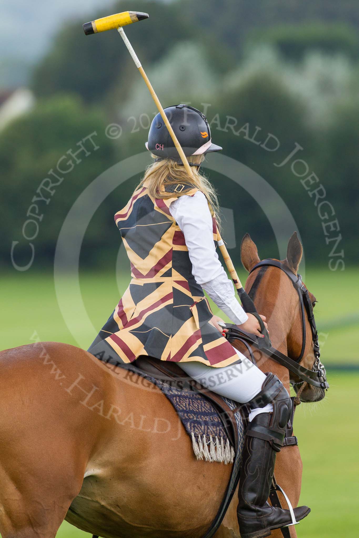 7th Heritage Polo Cup semi-finals: Heloise Lorentzen, The Amazons of Polo, with teeth protection in her Nations colours....Brazil..