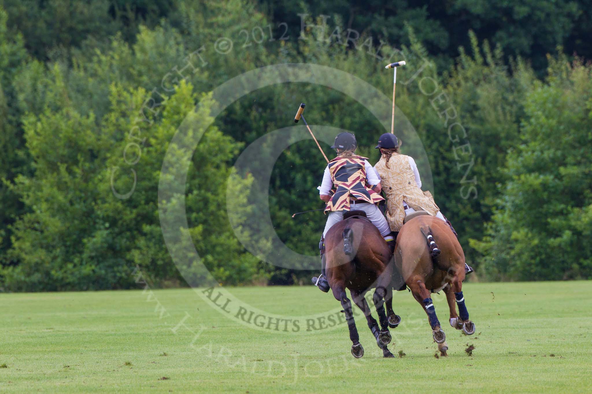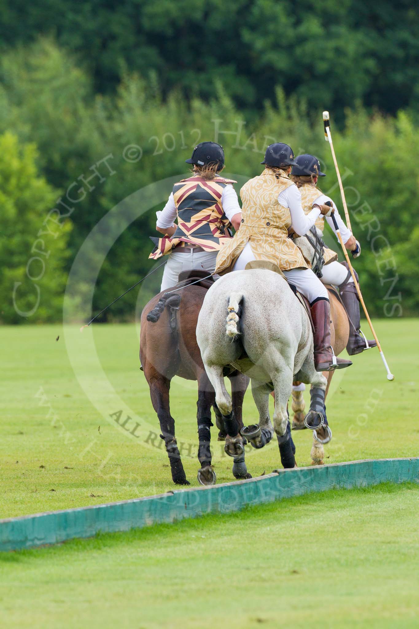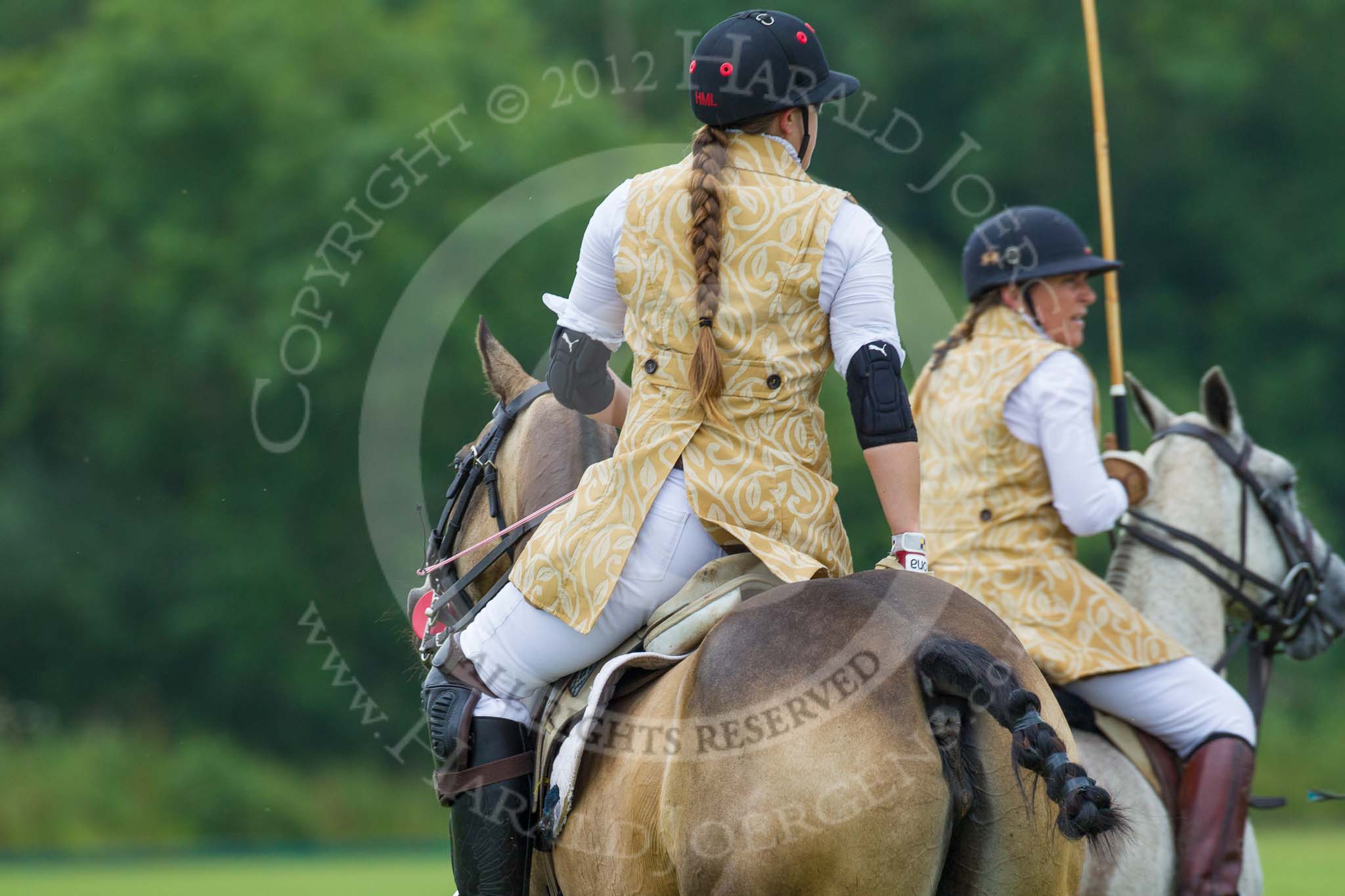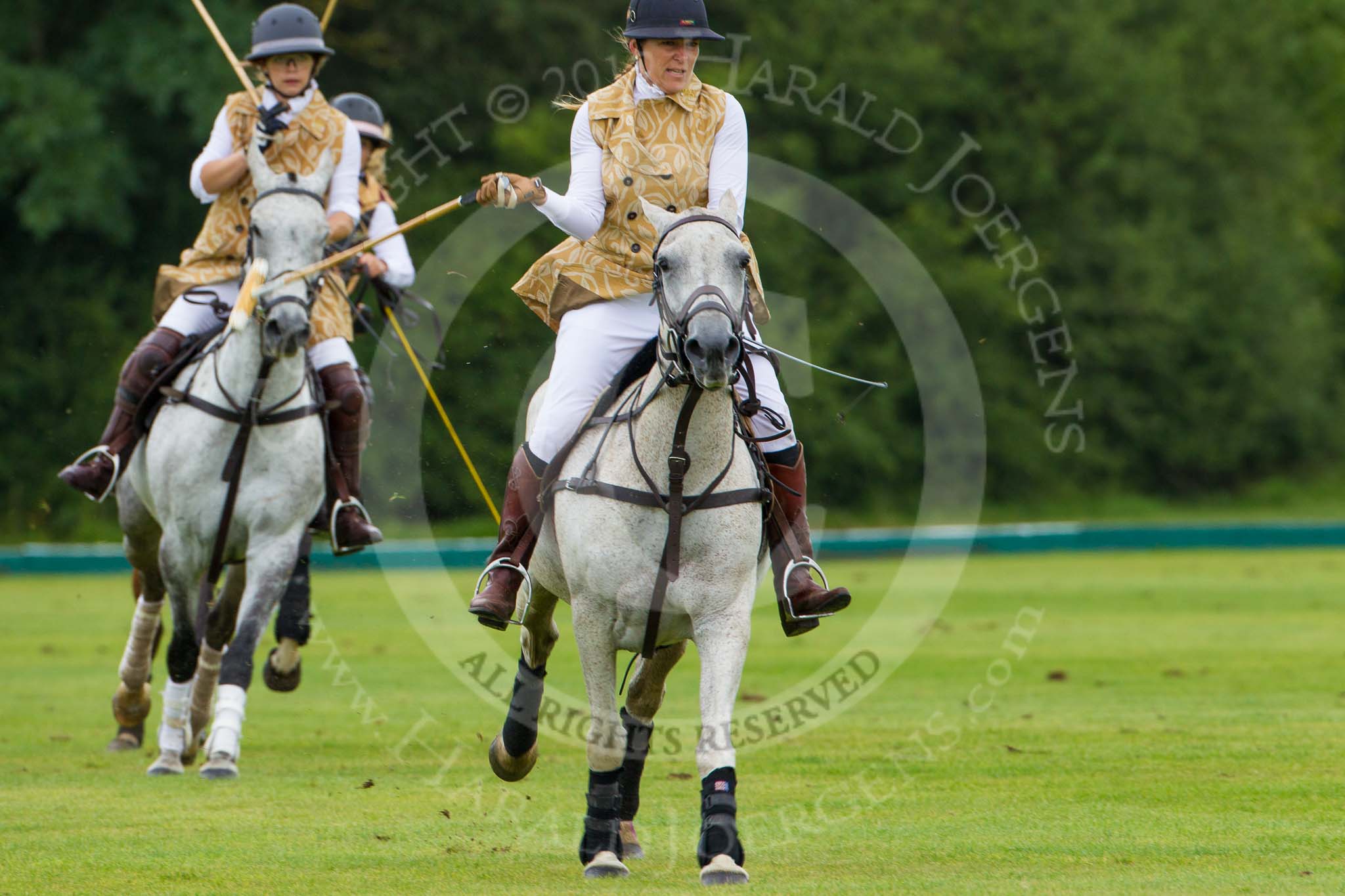 7th Heritage Polo Cup semi-finals: Diagonal offside shot by Barbara P Zingg followed by Emma Boers, The Amazons of Polo sponsored by Polistas..