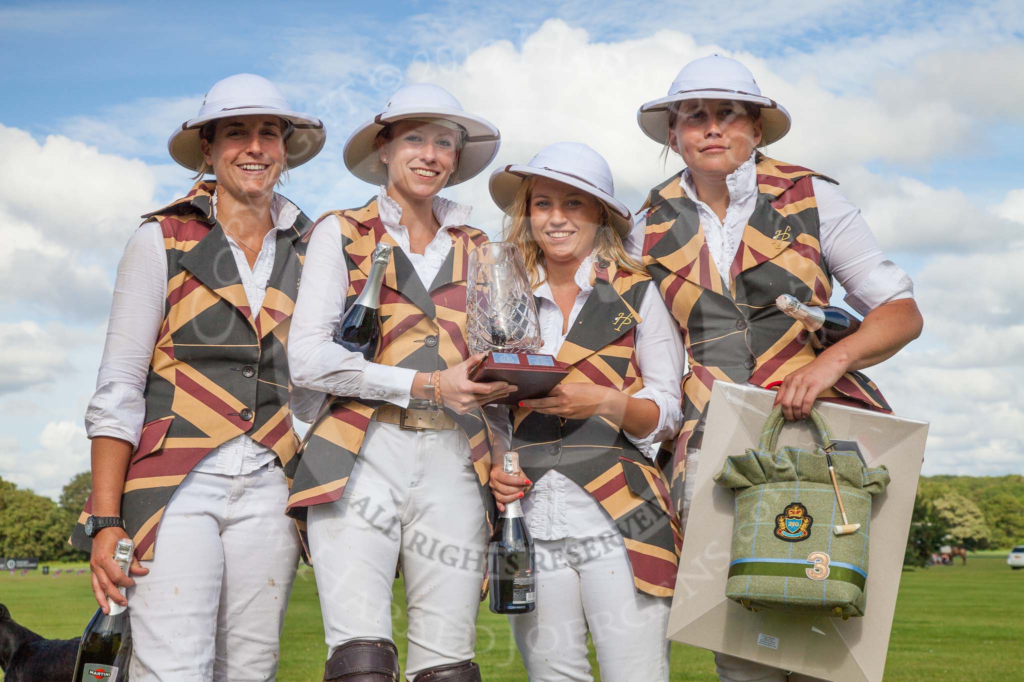 7th Heritage Polo Cup finals: Ladies of the British Empire holding the Ladies HERITAGE POLO CUP 2012 ltr Sarah Wisman, Leigh Fisher, Charlie Howel, Rosie Ross..