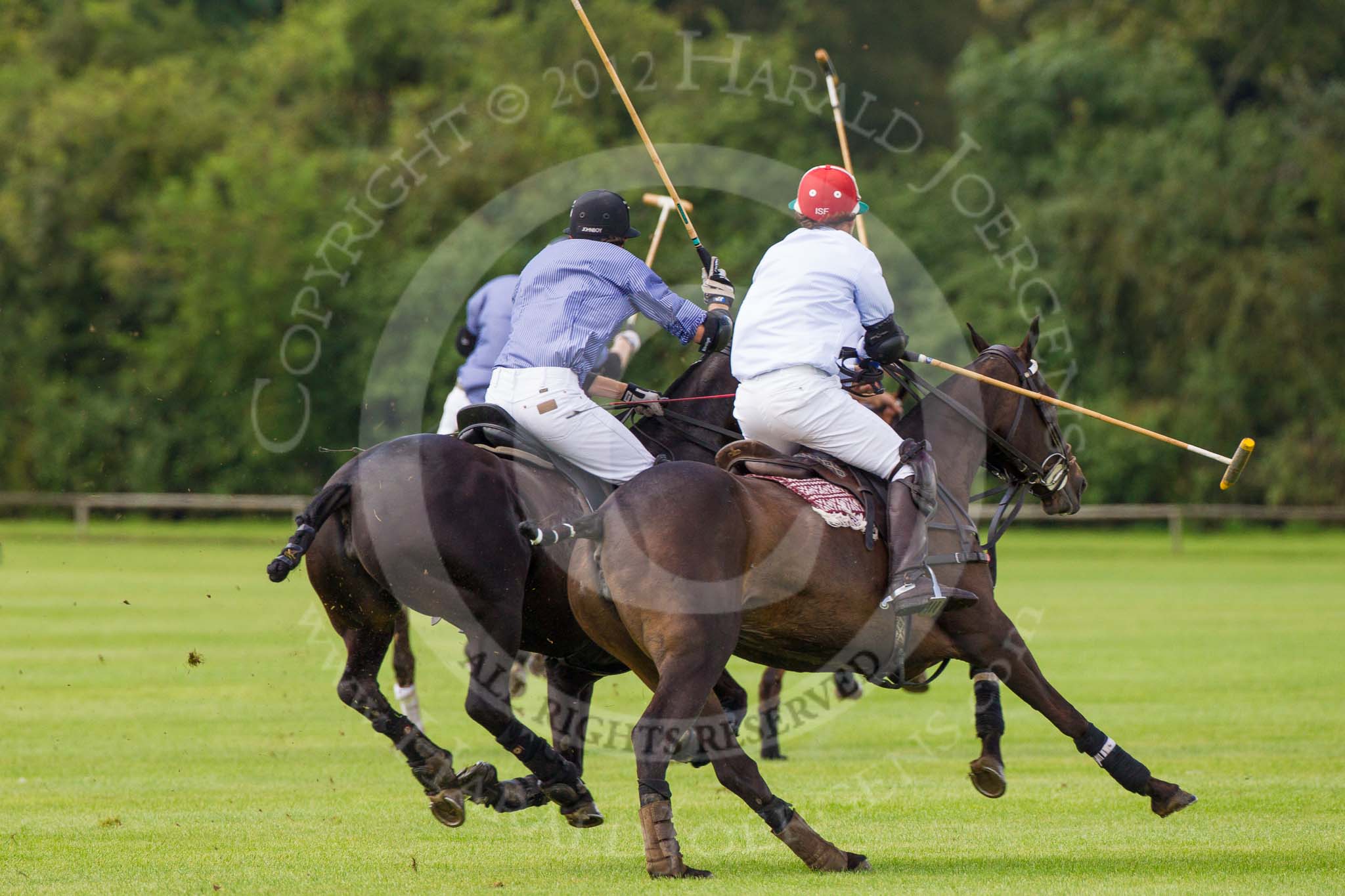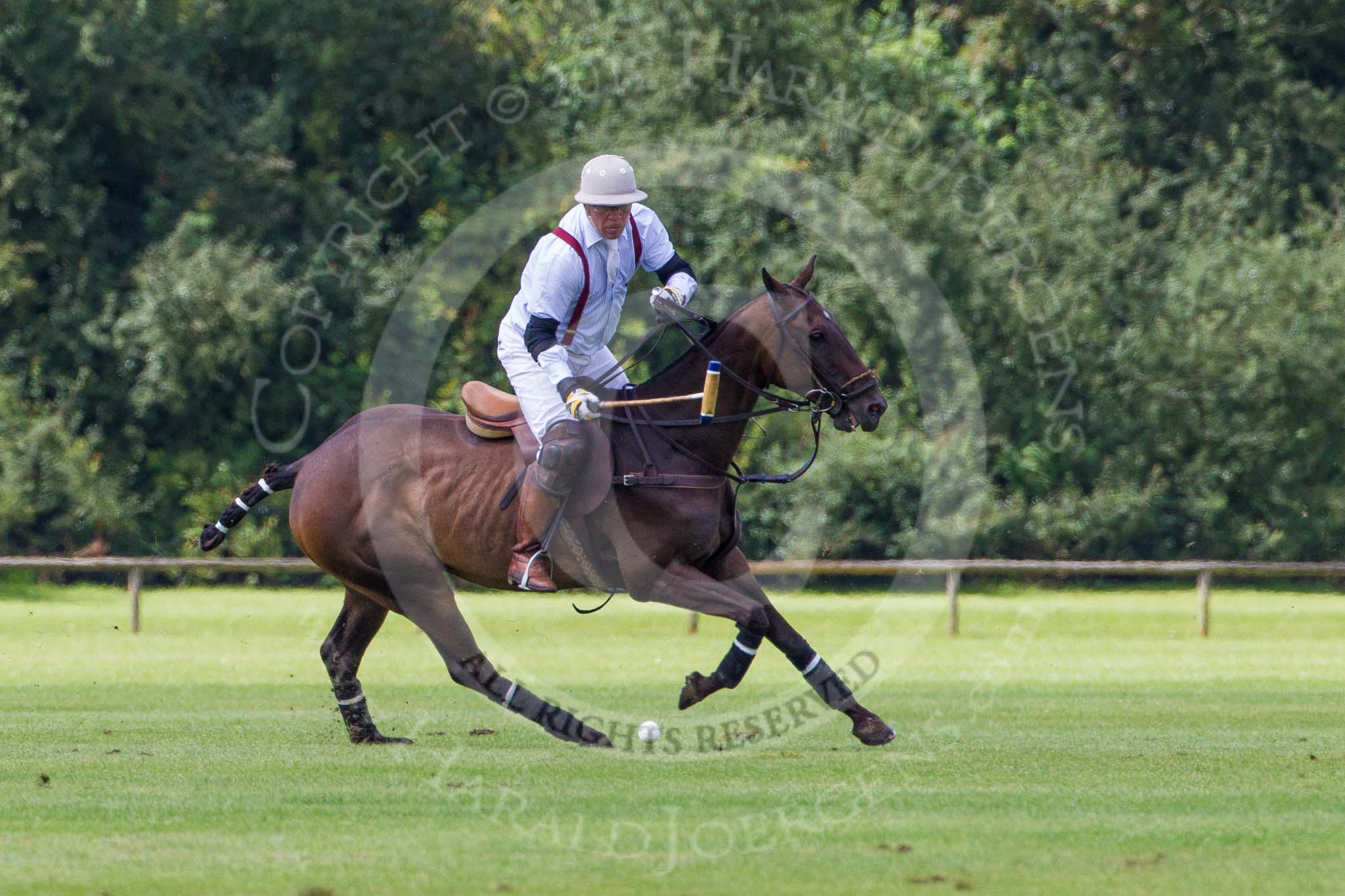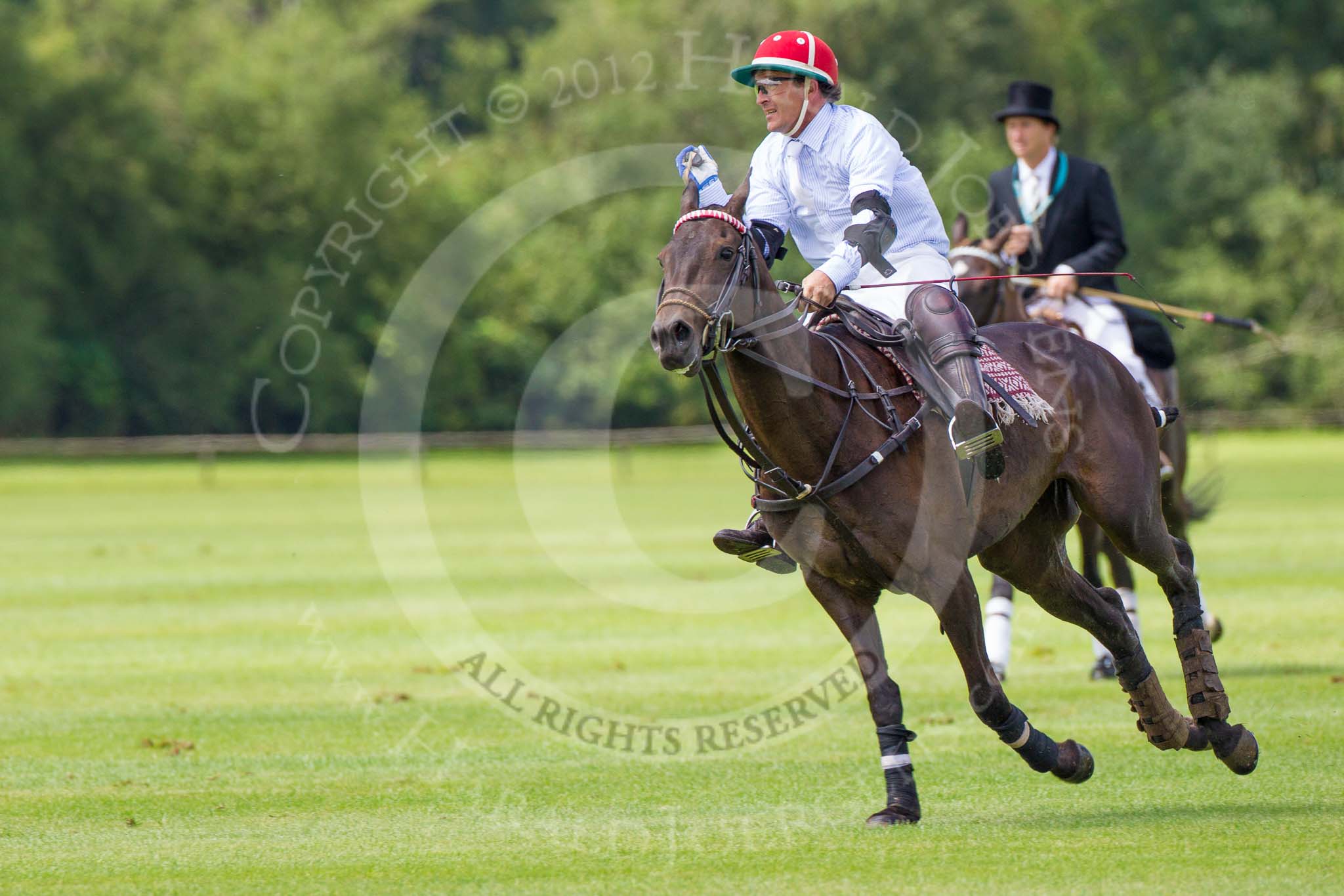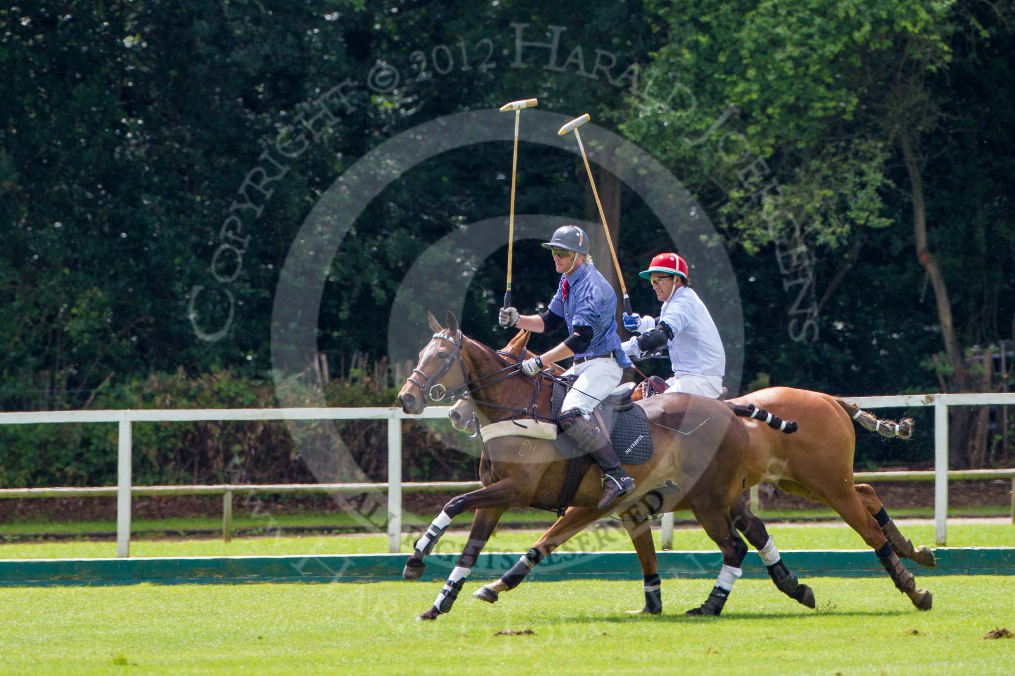 7th Heritage Polo Cup finals: Henry Fisher of Silver Fox USA Polo Team on the ball in the Final of the 7th HERITAGE POLO CUP 2012 v Mariano Darritchon of La Mariposa Argentina Polo Team (T.M.Lewin Official Shirt & Tie Supplier)..