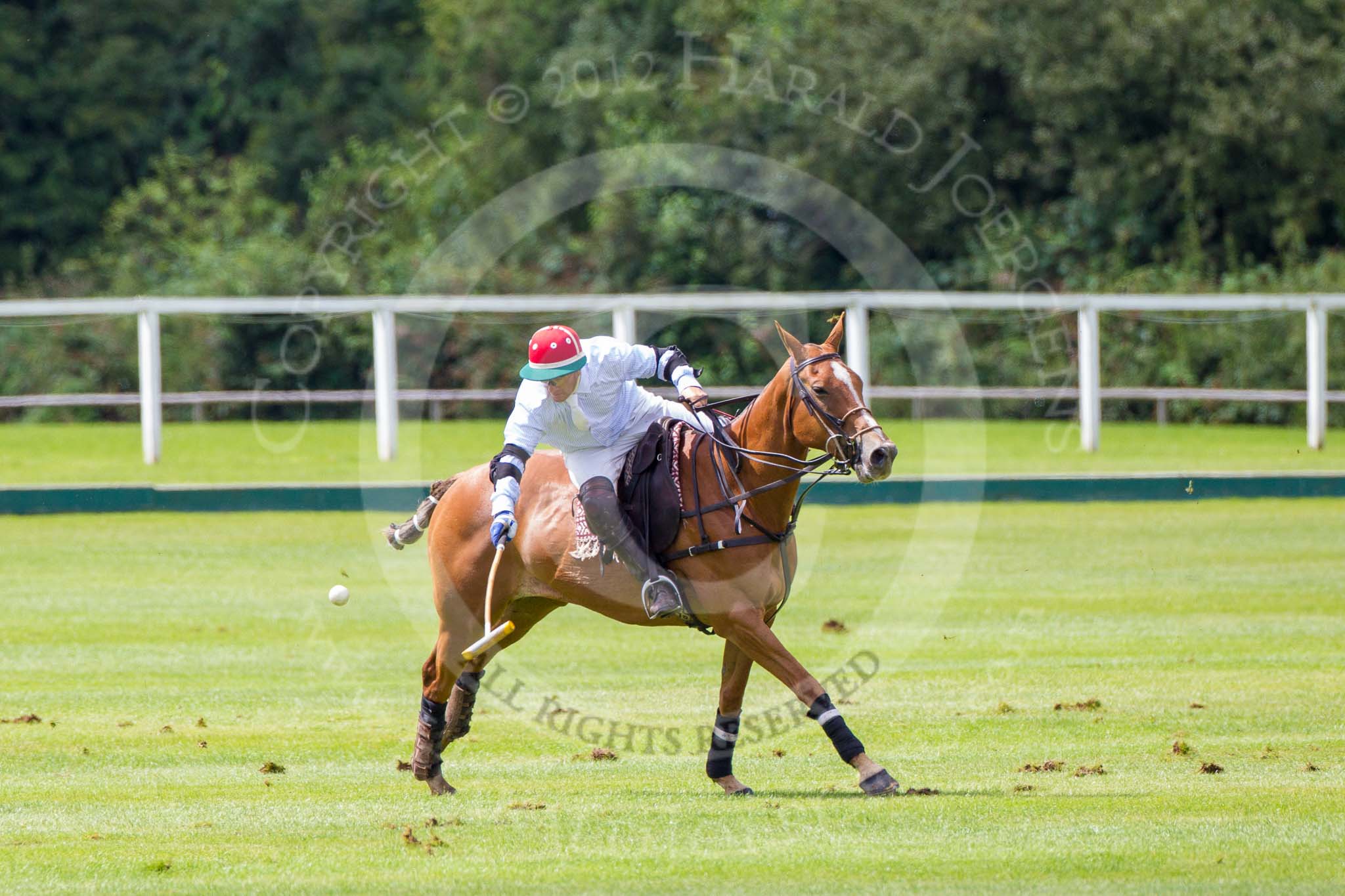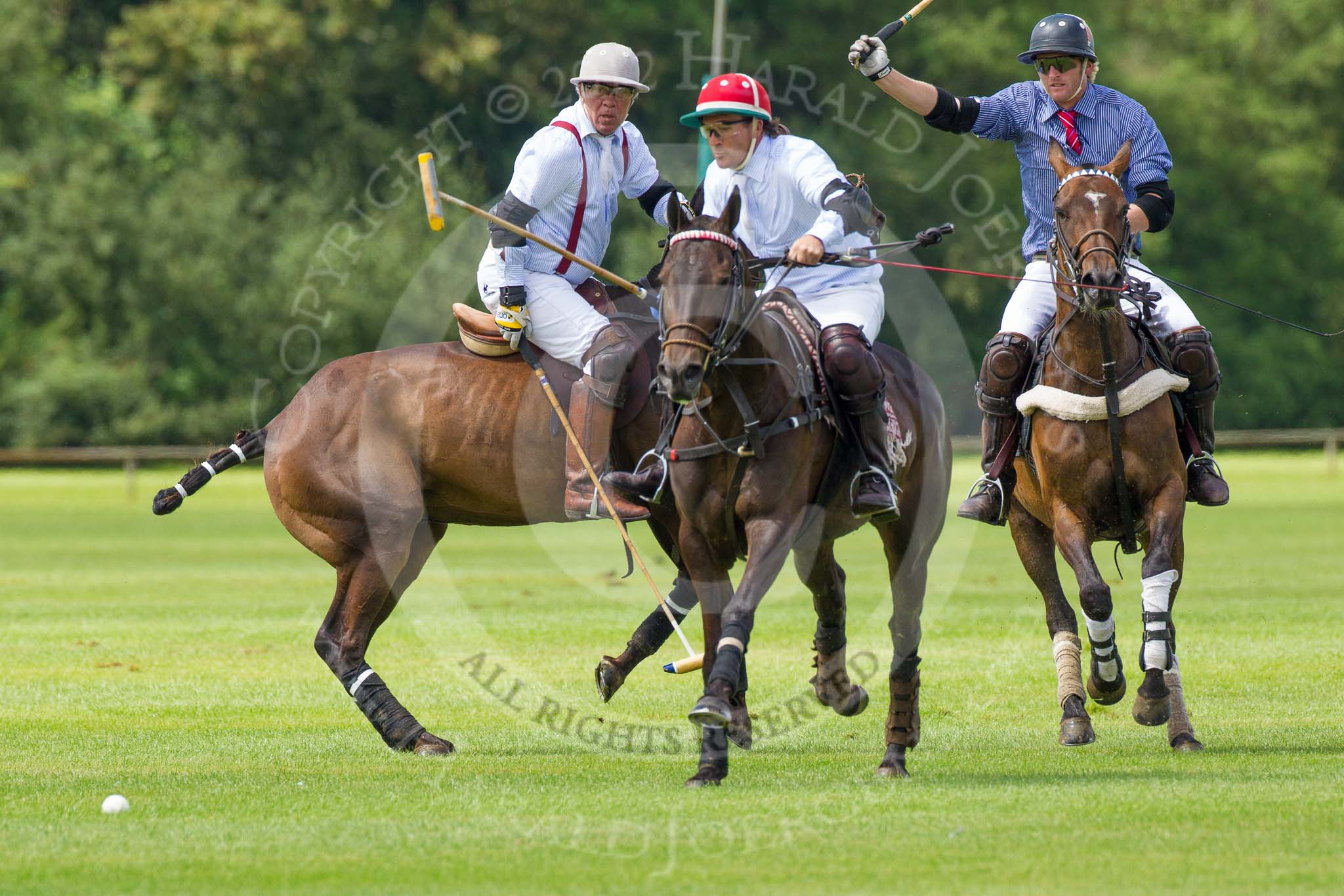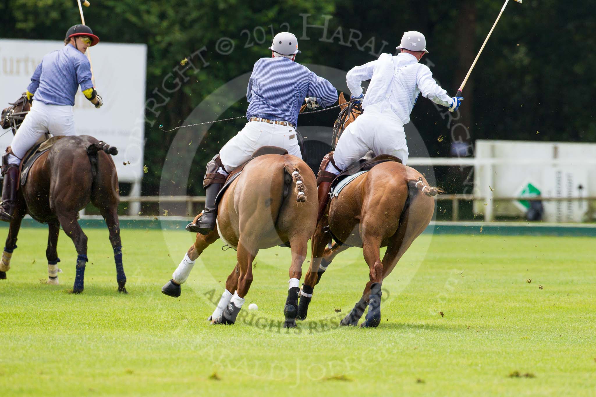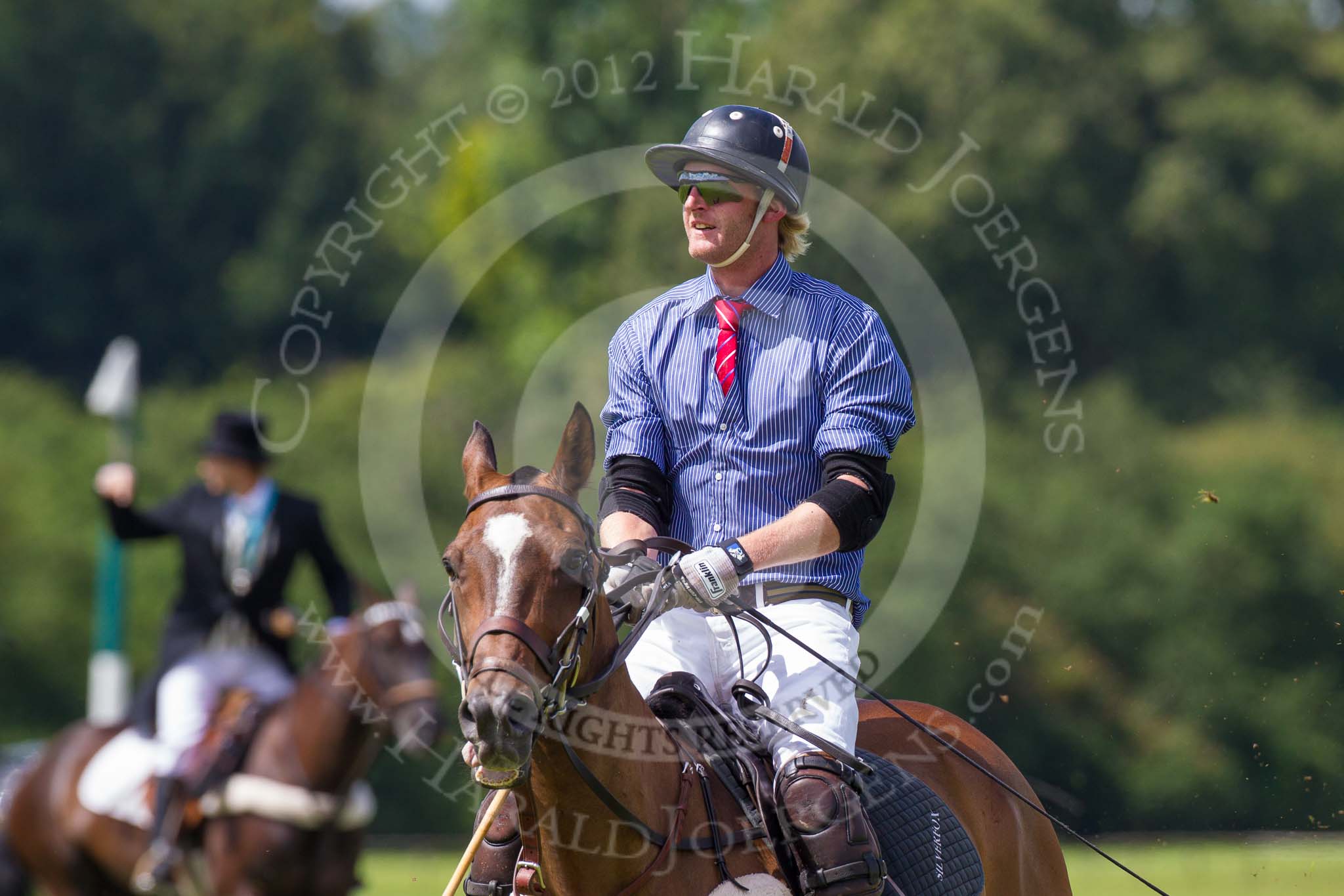 7th Heritage Polo Cup finals: Henry Fisher of Silver Fox USA Polo Team on the ball in the Final of the 7th HERITAGE POLO CUP 2012 v Mariano Darritchon of La Mariposa Argentina Polo Team (T.M.Lewin Official Shirt & Tie Supplier)..