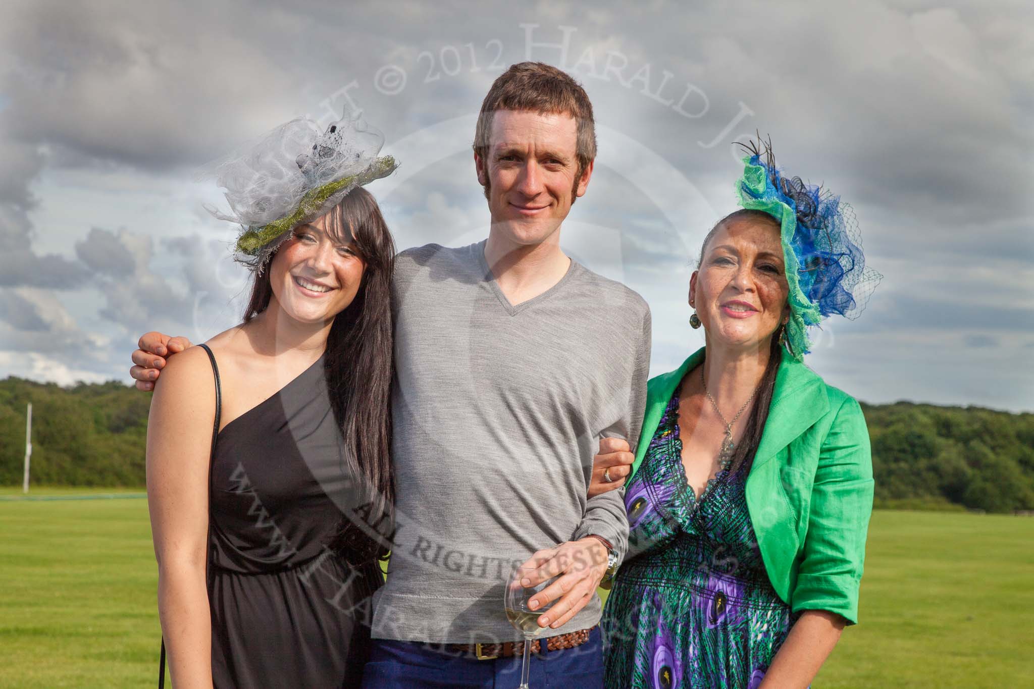 7th Heritage Polo Cup finals: Bradley Wiggins sandwiched between Annabel and Jennifer Cattlin..