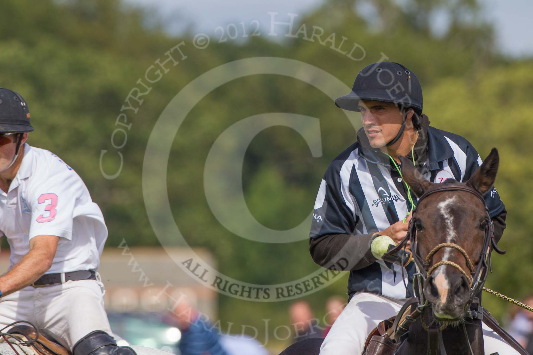 DBPC Polo in the Park 2012: Dawson Group Polo Team #3, Michael Henderson, and umpire Matias Amaya.. Dallas Burston Polo Club, Stoneythorpe Estate, Southam, Warwickshire, United Kingdom, on 16 September 2012 at 13:18, image #143