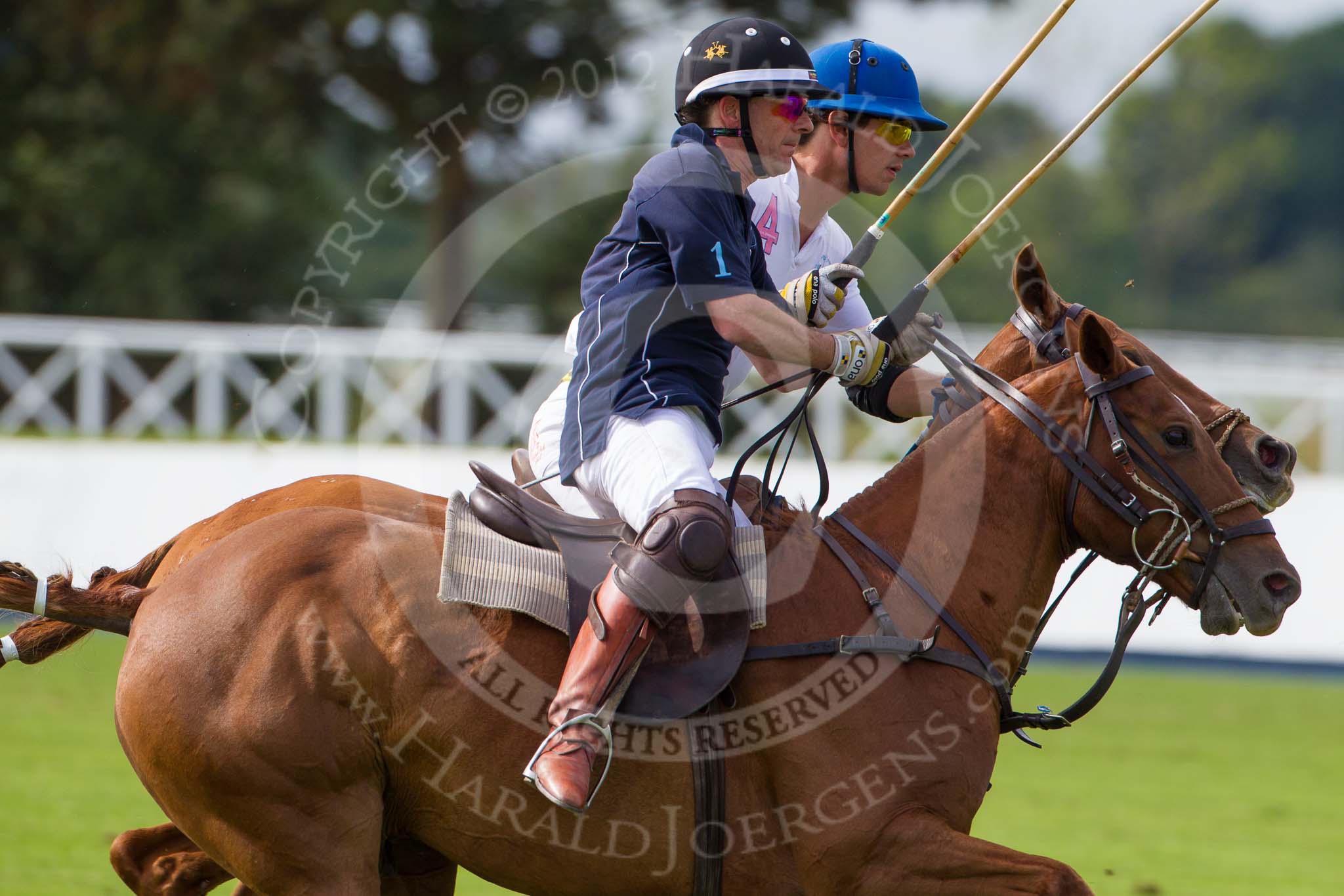 DBPC Polo in the Park 2012: Quicksilver Polo Team #1, Peter Ferrari, and Dawson Group Polo Team #4, David Ashby.. Dallas Burston Polo Club, Stoneythorpe Estate, Southam, Warwickshire, United Kingdom, on 16 September 2012 at 13:39, image #154