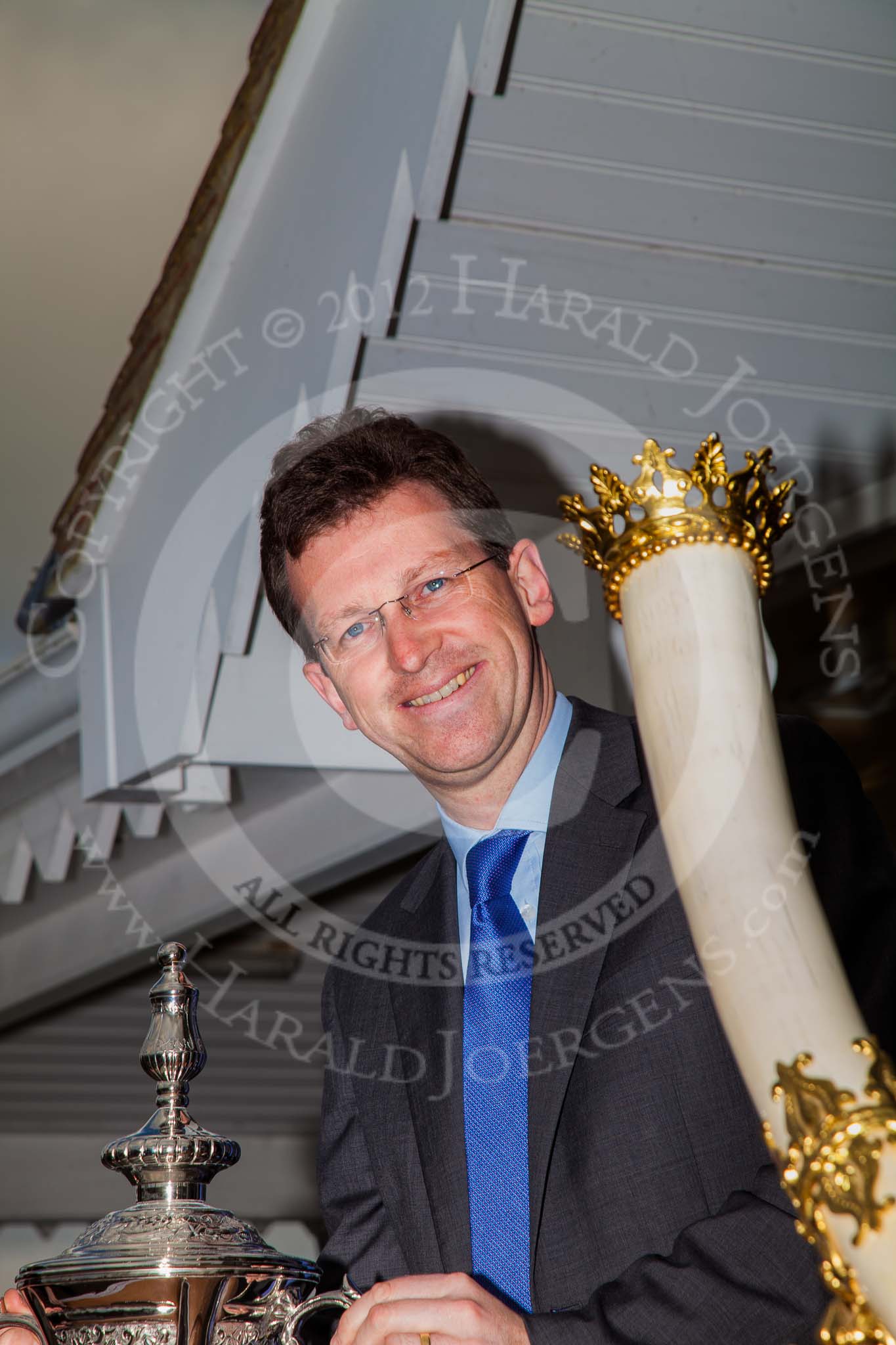 DBPC Polo in the Park 2012: Southam and Kenilworth MP Jeremy Clark with the prices for the 4 Goal Tusk Trophy Tournament.. Dallas Burston Polo Club, Stoneythorpe Estate, Southam, Warwickshire, United Kingdom, on 16 September 2012 at 16:35, image #247