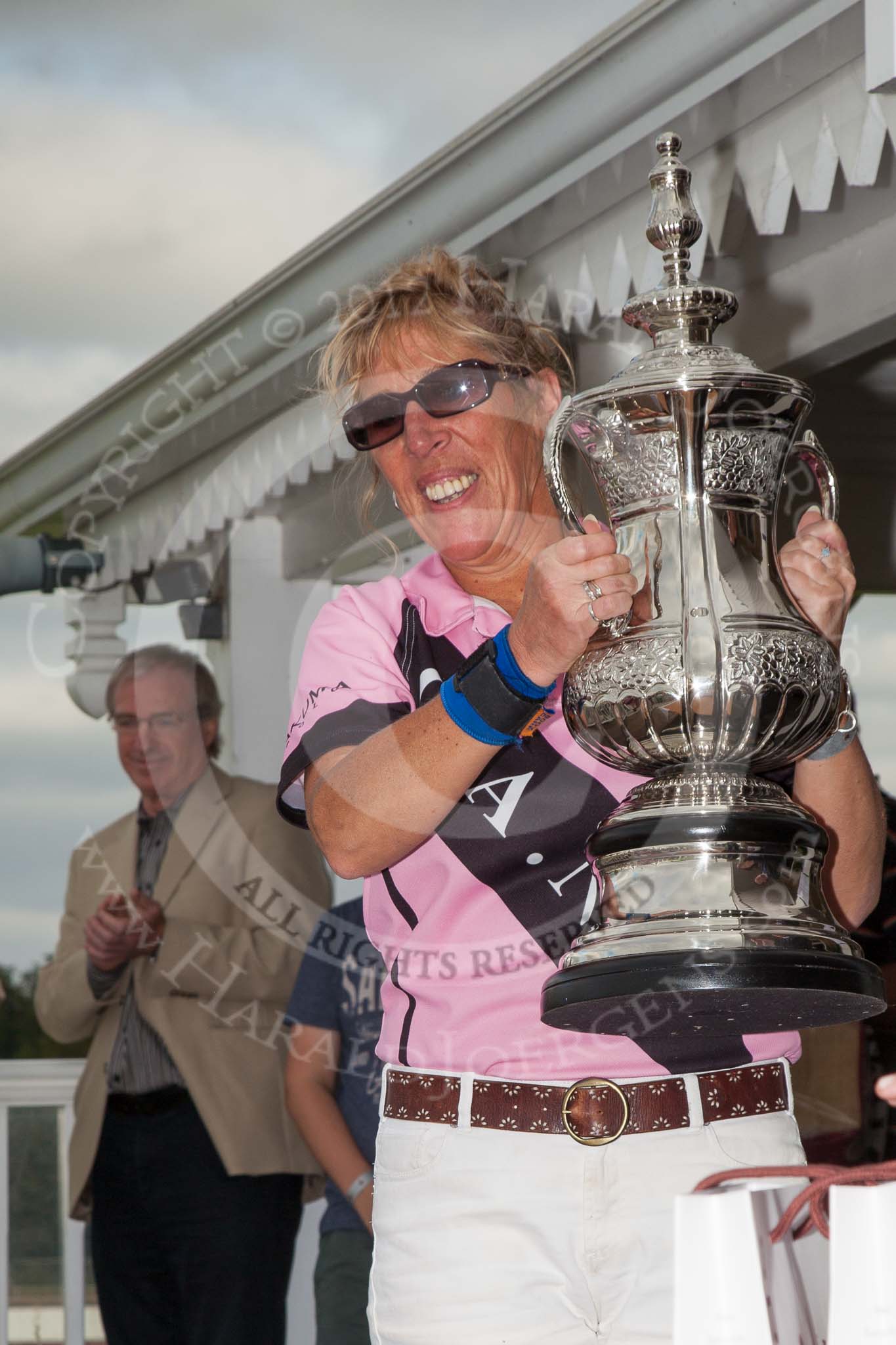 DBPC Polo in the Park 2012: Lousie Jebson for the C.A.N.I. team, the winner of the 4 Goal Tusk Trophy Tournament.. Dallas Burston Polo Club, Stoneythorpe Estate, Southam, Warwickshire, United Kingdom, on 16 September 2012 at 16:40, image #250