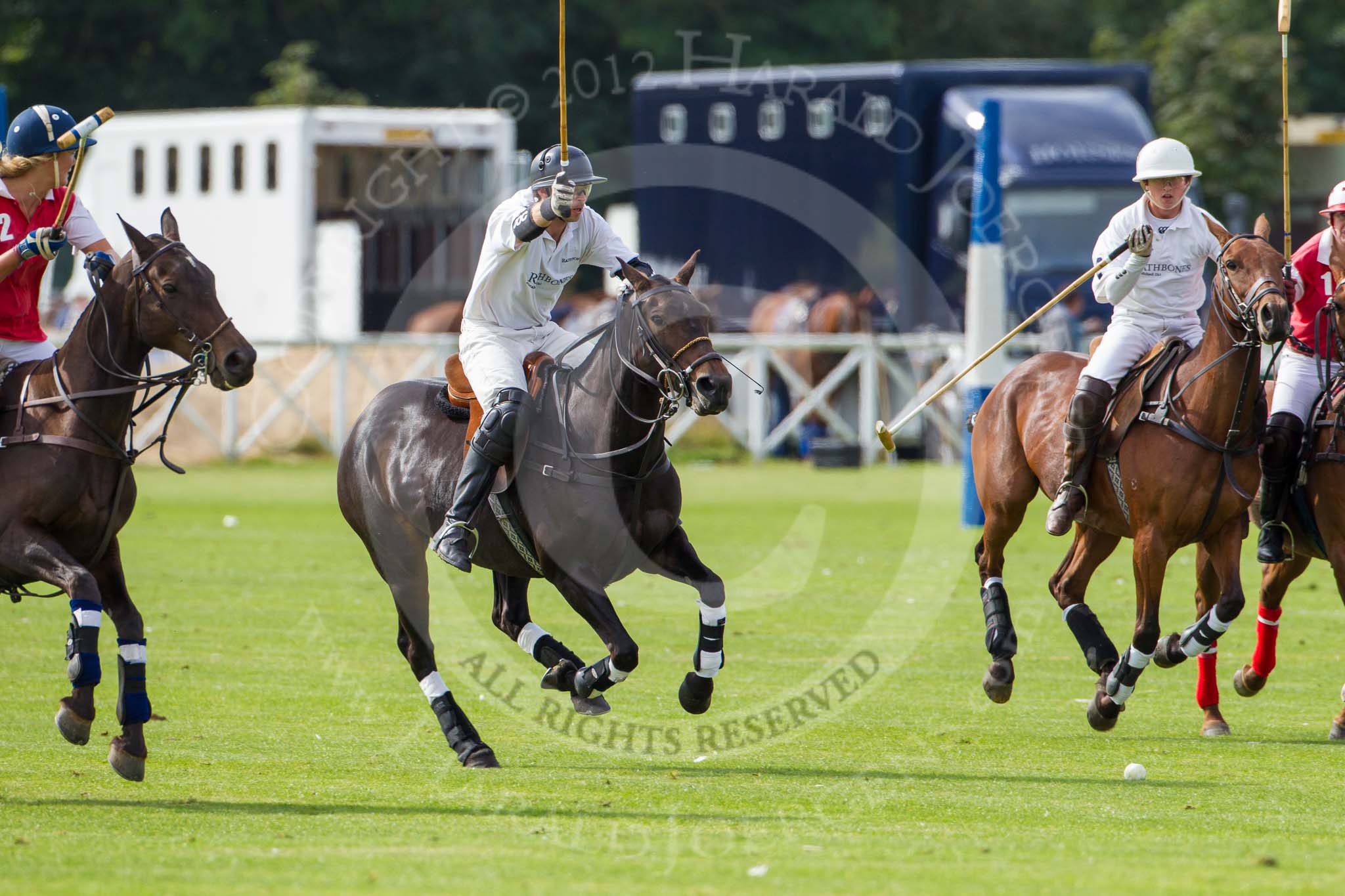 DBPC Polo in the Park 2012: Rathbones Polo Team #2, Phoenix #3, Tomy Iriarte, Rathbones #4, Alex Boucher, and #1, Molly Davies.. Dallas Burston Polo Club, Stoneythorpe Estate, Southam, Warwickshire, United Kingdom, on 16 September 2012 at 11:49, image #107